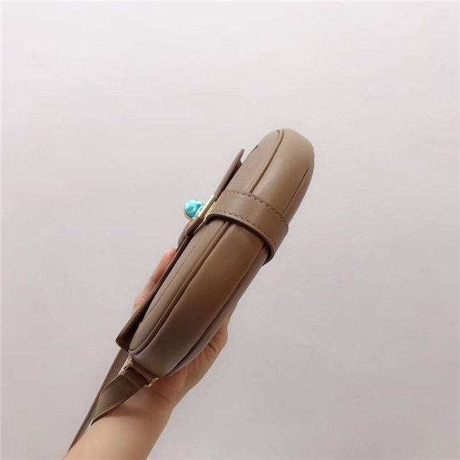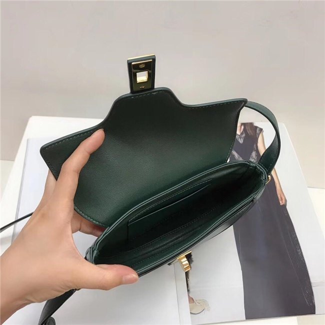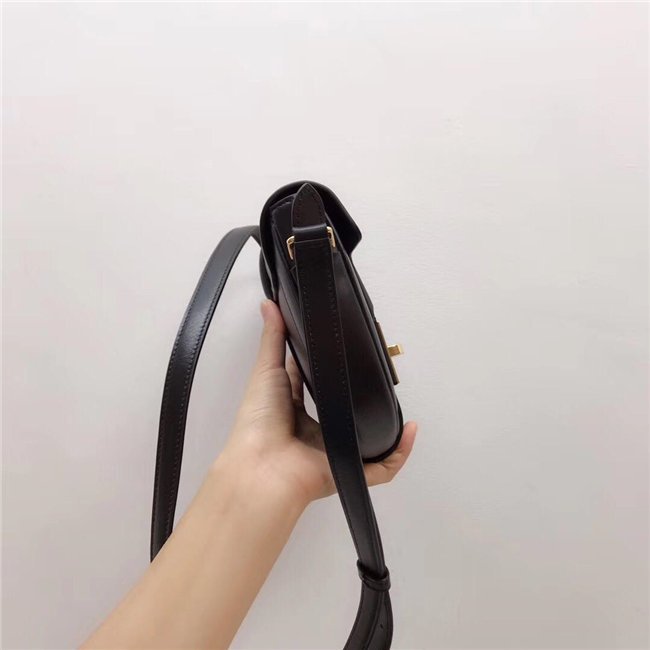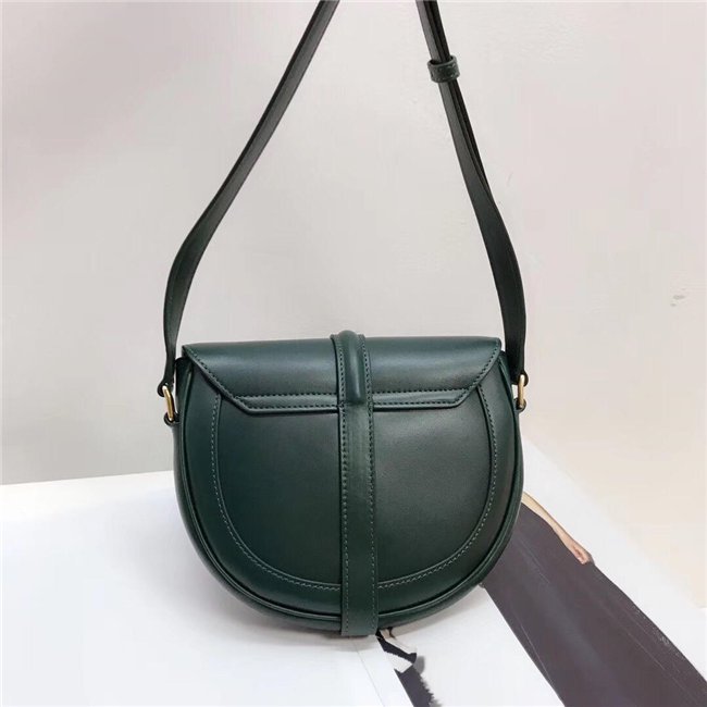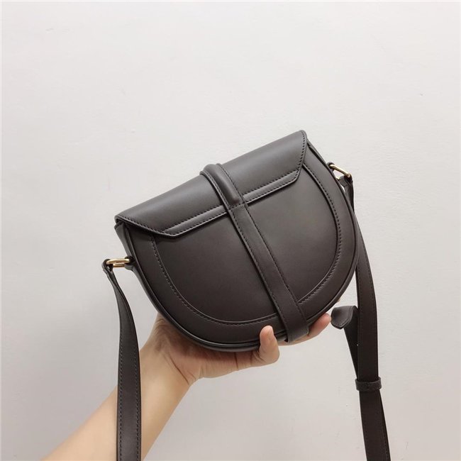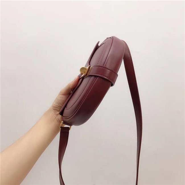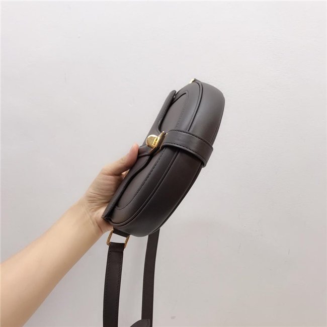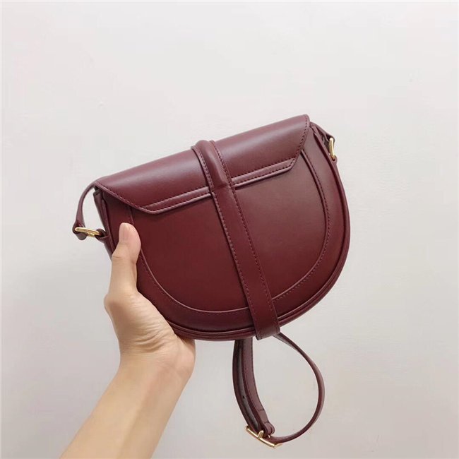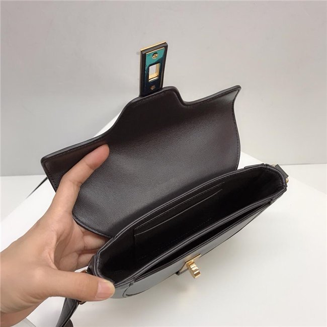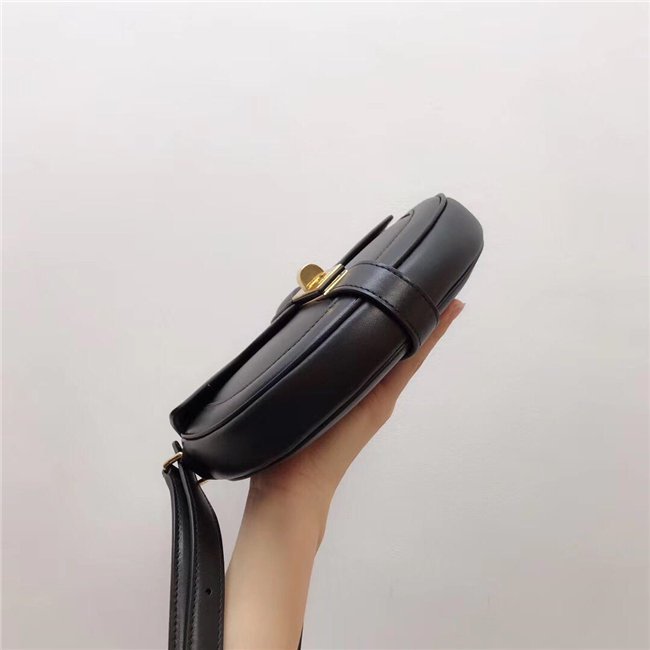 SMALL BESACE 16 IN SATINATED CALFSKIN WITH AN ADJUSTABLE SHOULDER STRAP, A TURN-LOCK CLOSURE AND A FLAT OUTER POCKET.