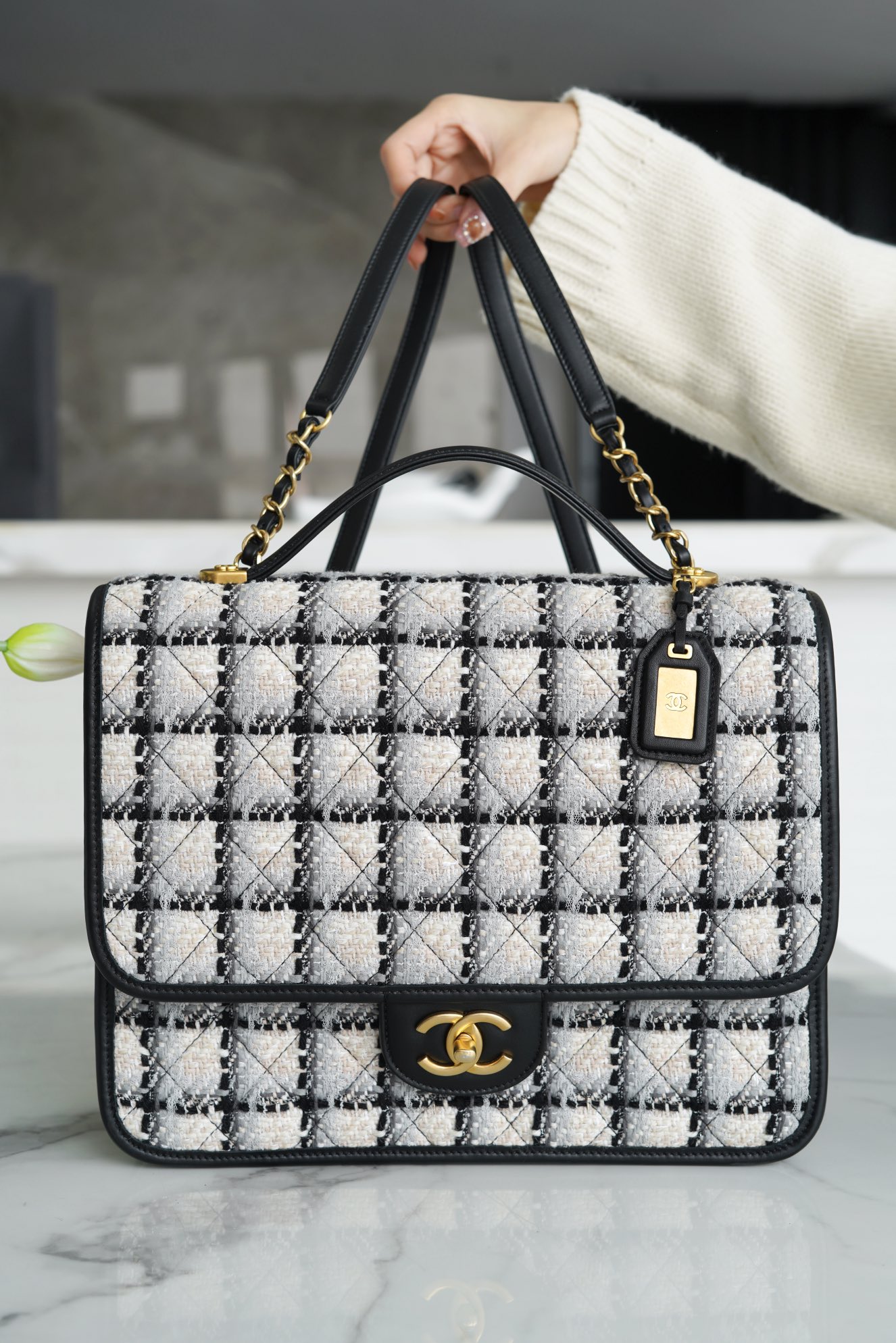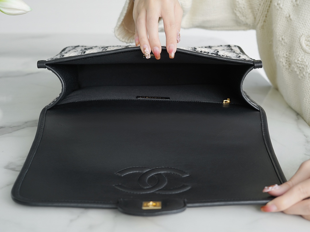 The CHANEL 22K Advanced Handcraft Workshop presents a black and white tweed shoulder bag that embodies the autumn/winter atmosphere with its textured woven fabric. It combines classic elements with a touch of uniqueness, adding a sense of sophistication. The bag has a spacious interior and exceptional practicality. It’s so beautiful that it will make you spin in circles with excitement.