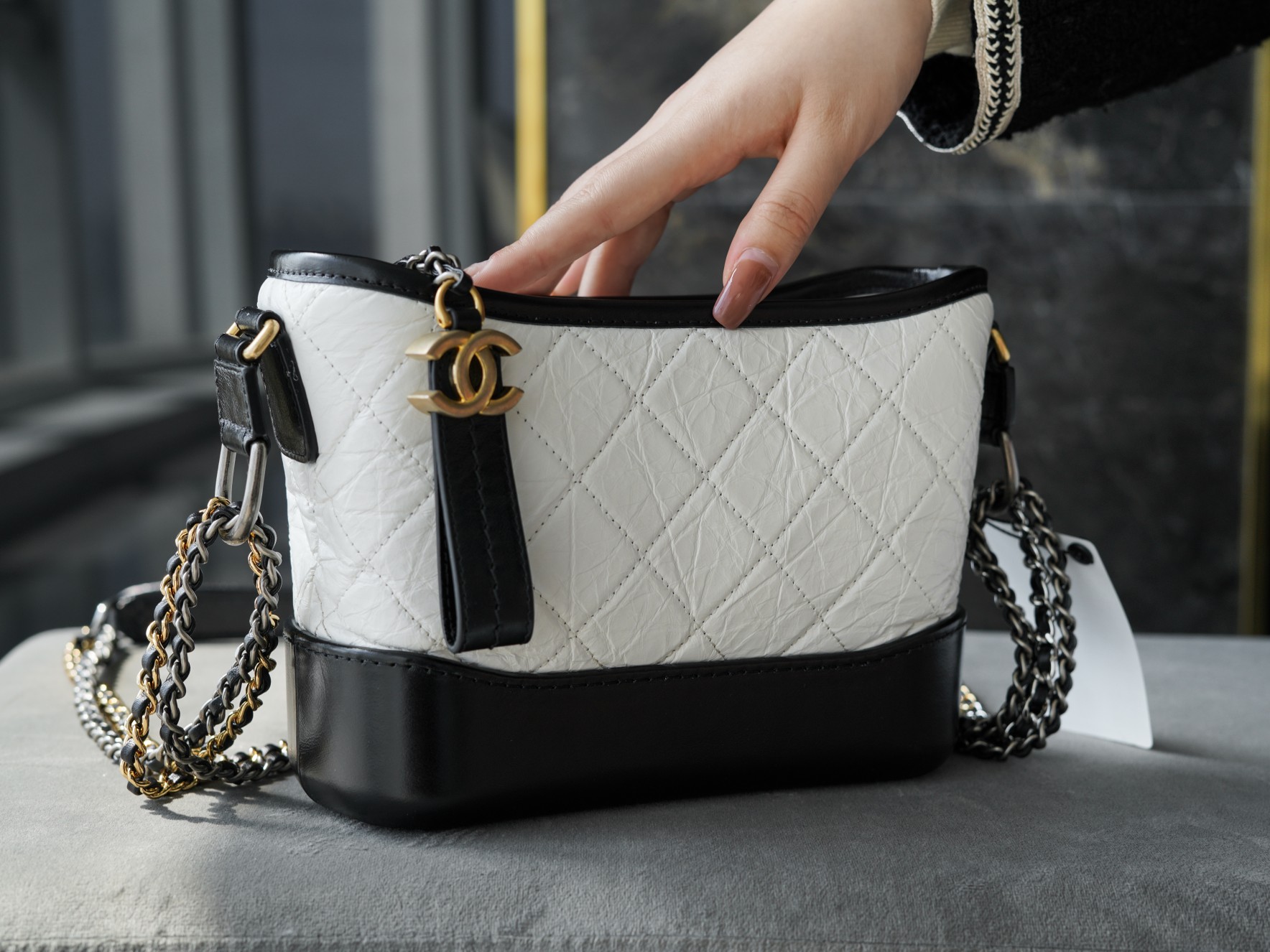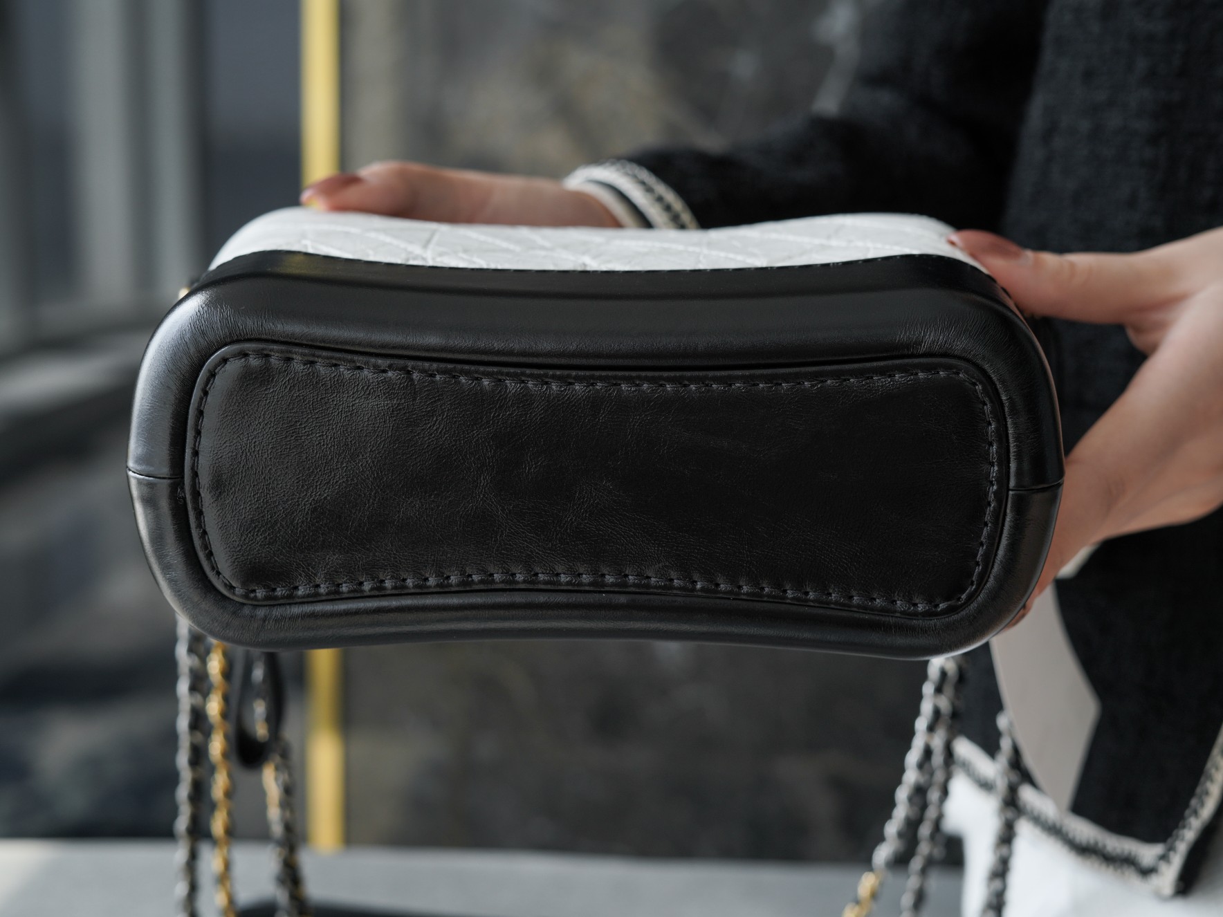 Made by Bao Mai Manufacturing, the Chanel Gabrielle handbag is a classic hobo bag made with genuine leather in a small size. It is crafted from authentic Italian “Montebello” prime veal leather, featuring natural and irregular grain patterns, exuding an authentic charm. It continues the aesthetic and practicality that Chanel handbags have always been known for, incorporating the principles of strength and elegance in its design. The bag showcases a new contrasting structure with different textures on the top and bottom, where the bottom is sleek and firm due to heat pressing, while the body remains exquisitely soft and delicate, maintaining a three-dimensional shape. It can be styled in various ways, suitable for both casual and versatile looks.