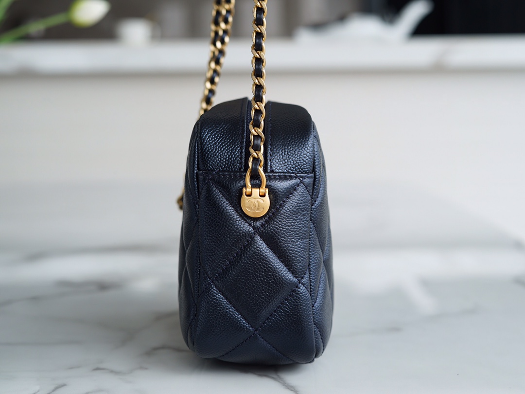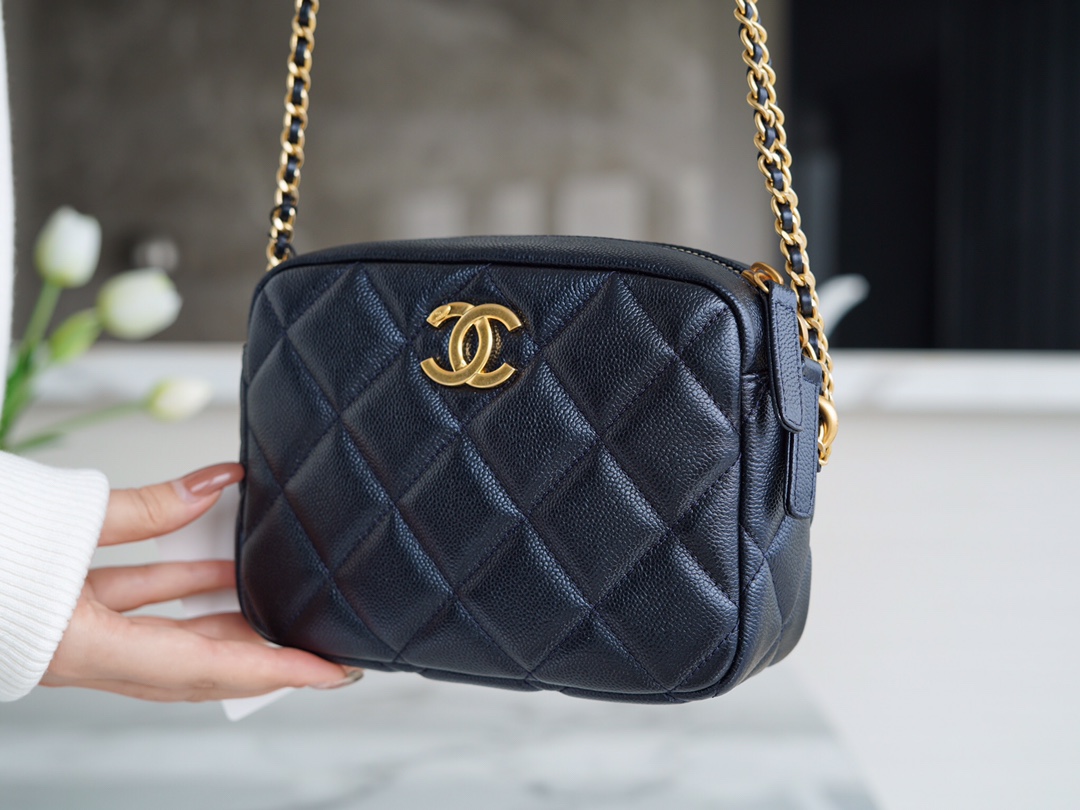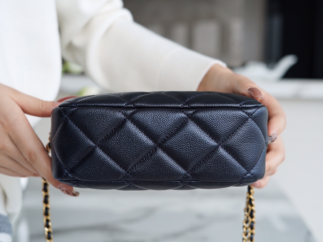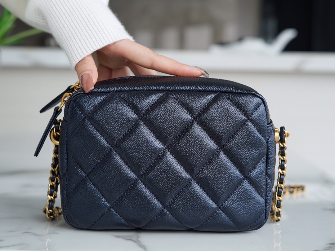 The CHANEL Fall/Winter new bullet shell crossbody bag in iridescent pink is undoubtedly the must-have item of the season. This season’s “C” camera bag is the king of cost-effectiveness, combining all the perfect features. The bullet shell has adjustable length buttons, cleverly designed with exquisite craftsmanship. The lychee-patterned cowhide gives it a pearlescent and enchanting touch, paired with a vintage and stylish sandy gold accent. Handcrafted to be sturdy and durable, this is a must-have item.