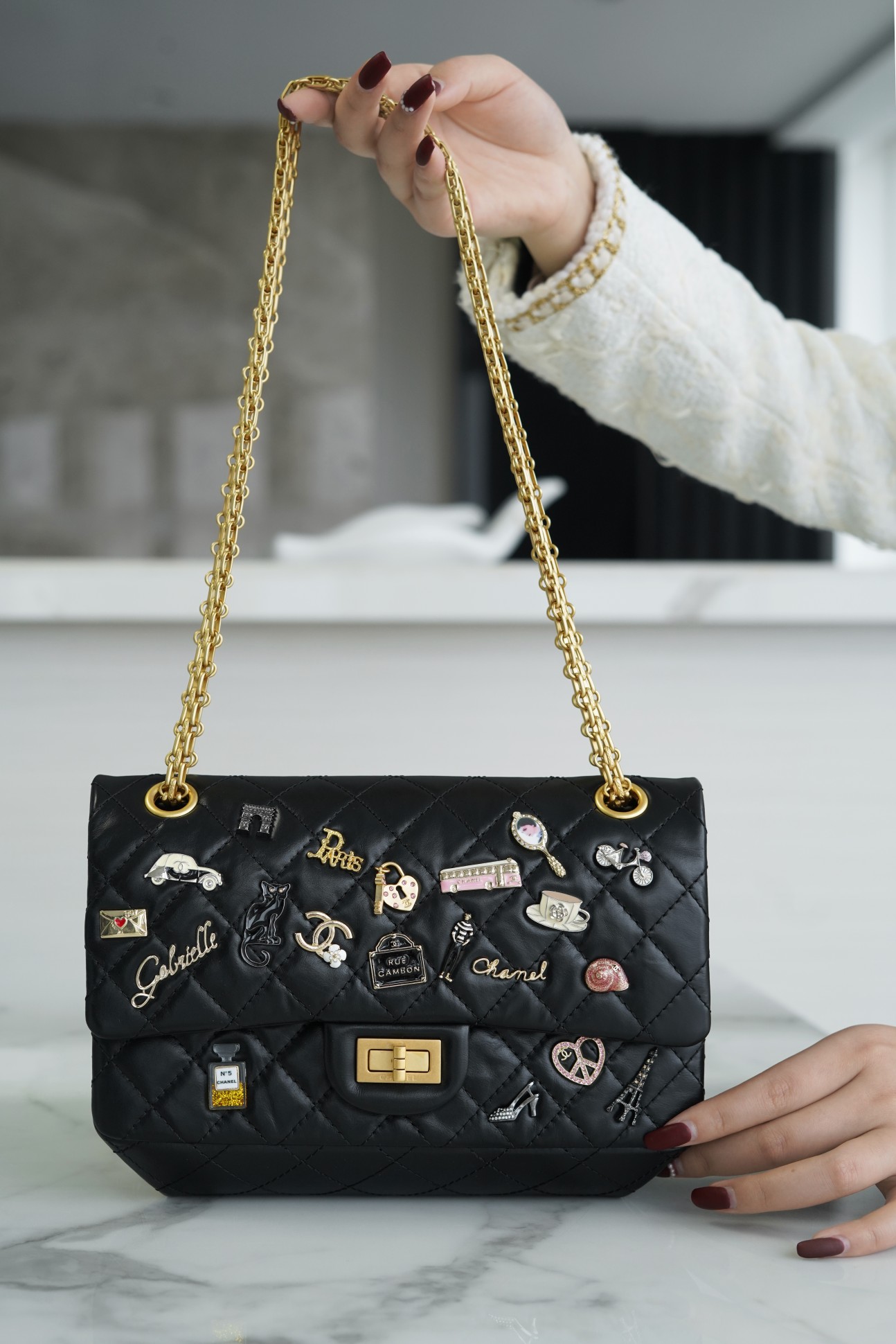 Chanel Replica Limited Edition Badge Collection is based on the iconic 2.55 chain, exuding classic nostalgia. When combined with exquisite badges, it transcends its practical value and becomes a perfect piece of art worth collecting. Each badge representing a special and beautiful meaning symbolizes the unique charm and spirit of Chanel!