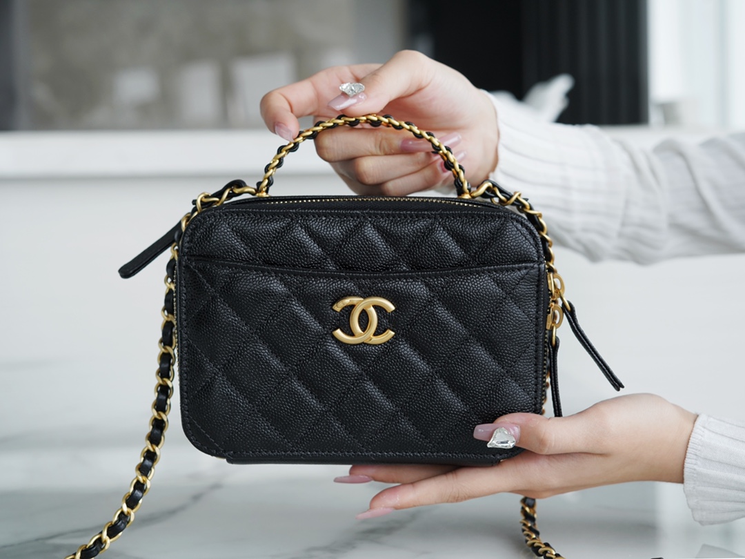 Chanel 22S Spring/Summer Hollow Handle Camera Bag black,Made with premium Italian 【INCAS】 top-grade calfskin, the diamond pattern is full and firm, with a good gloss and a perfect balance of toughness and elegance, offering excellent durability‼️ It exudes a rich and luxurious texture. It can be opened from both sides, with a spacious capacity. Black is classic and timeless! Delicate and delicate, it is versatile and suitable for daily commuting and outings.