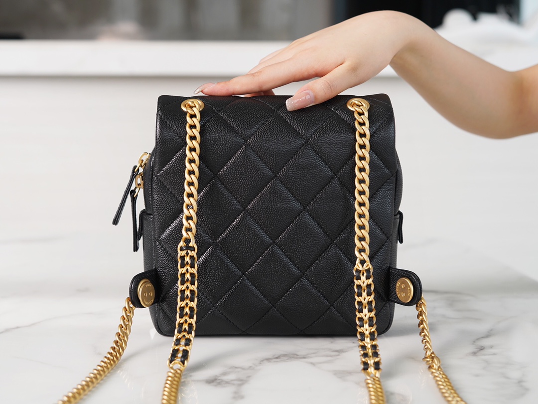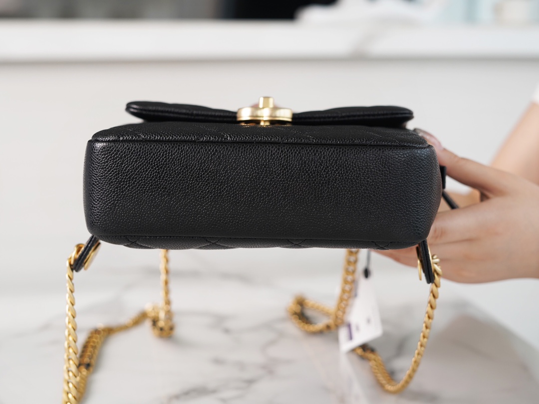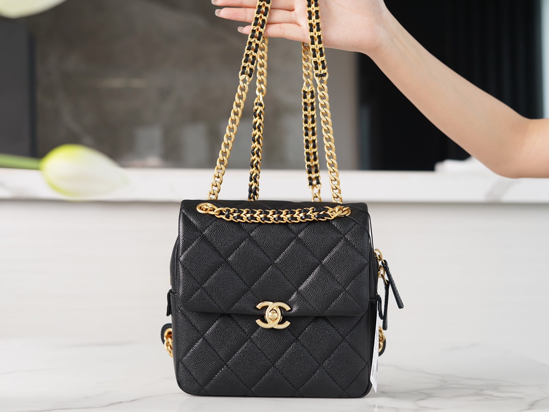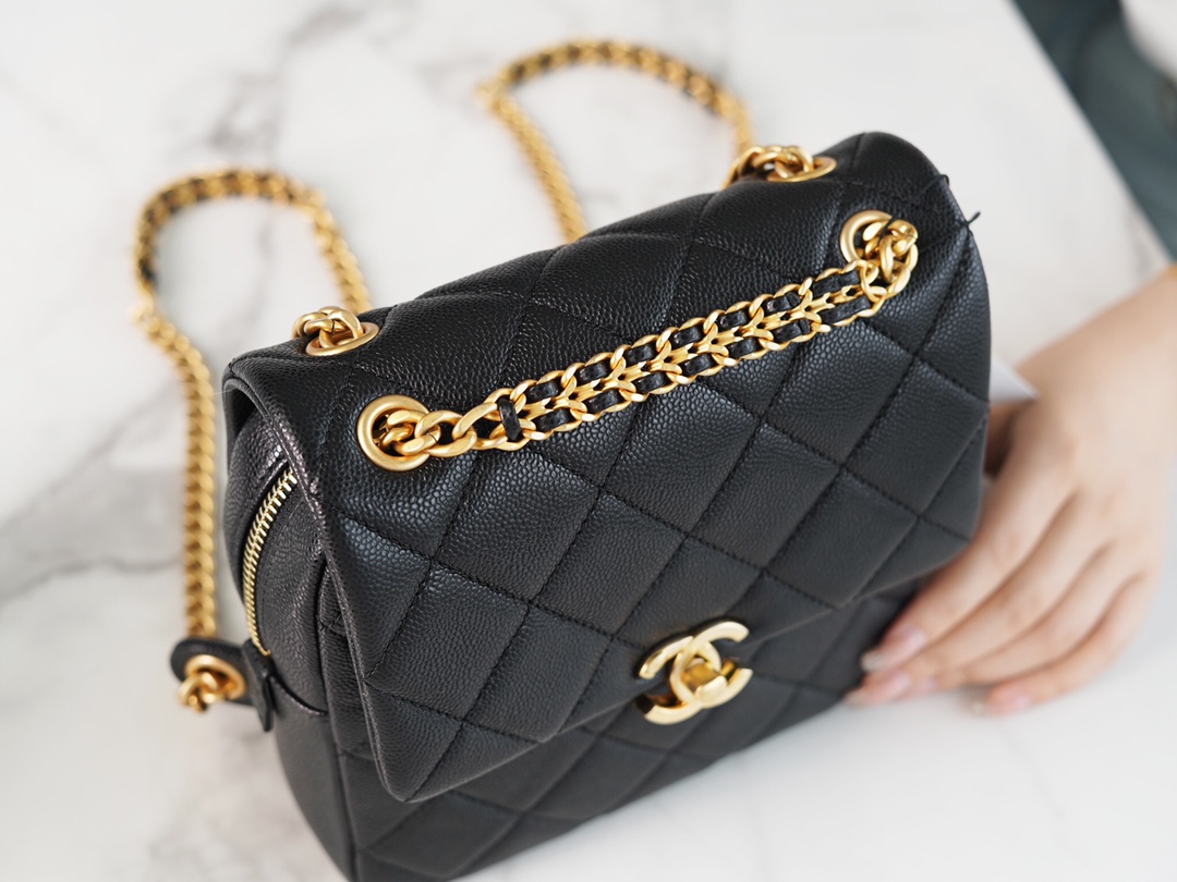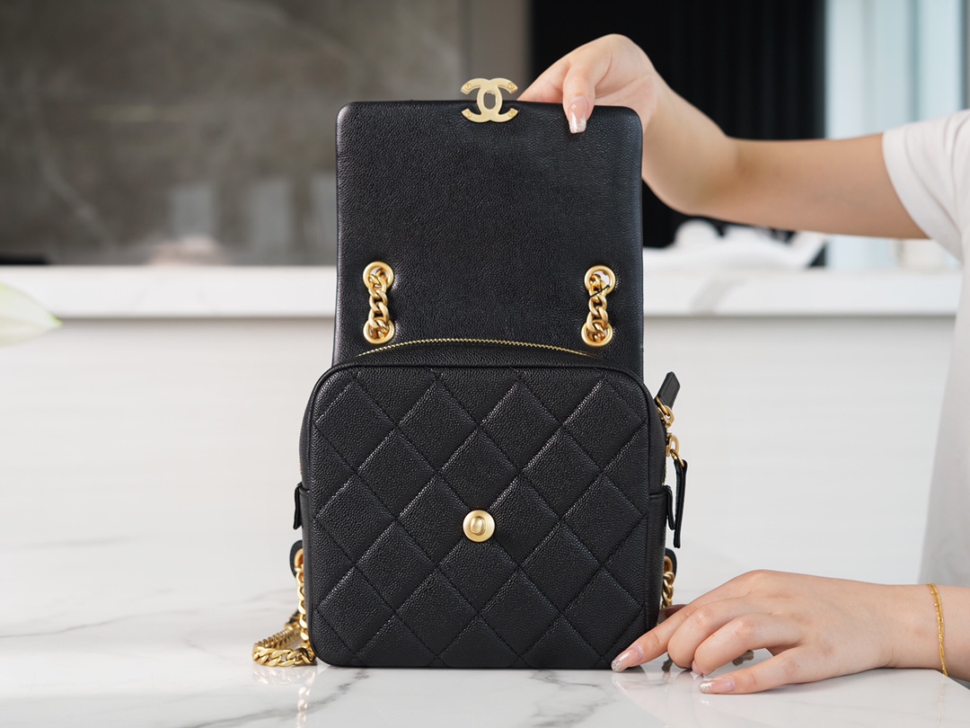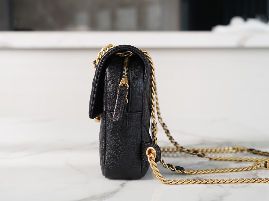 The CHANEL 22P Vintage Black Shoulder Bag is a perfect accessory that liberates your hands. It is elegant, compact, and adorable, without the heaviness typically associated with shoulder bags. The design of the shoulder straps deserves special praise. Although they are made of metal chains, they have been widened to provide comfort and prevent shoulder fatigue, making it easy to carry around. The bag has a satisfactory capacity and can accommodate all your daily essentials.