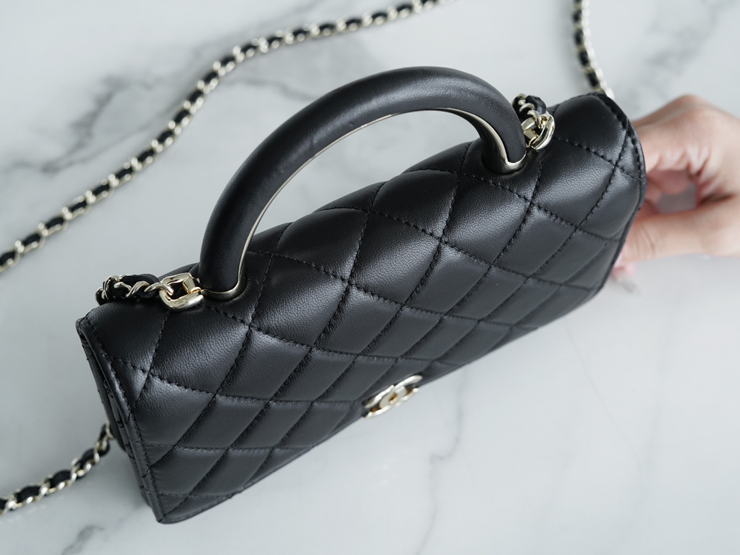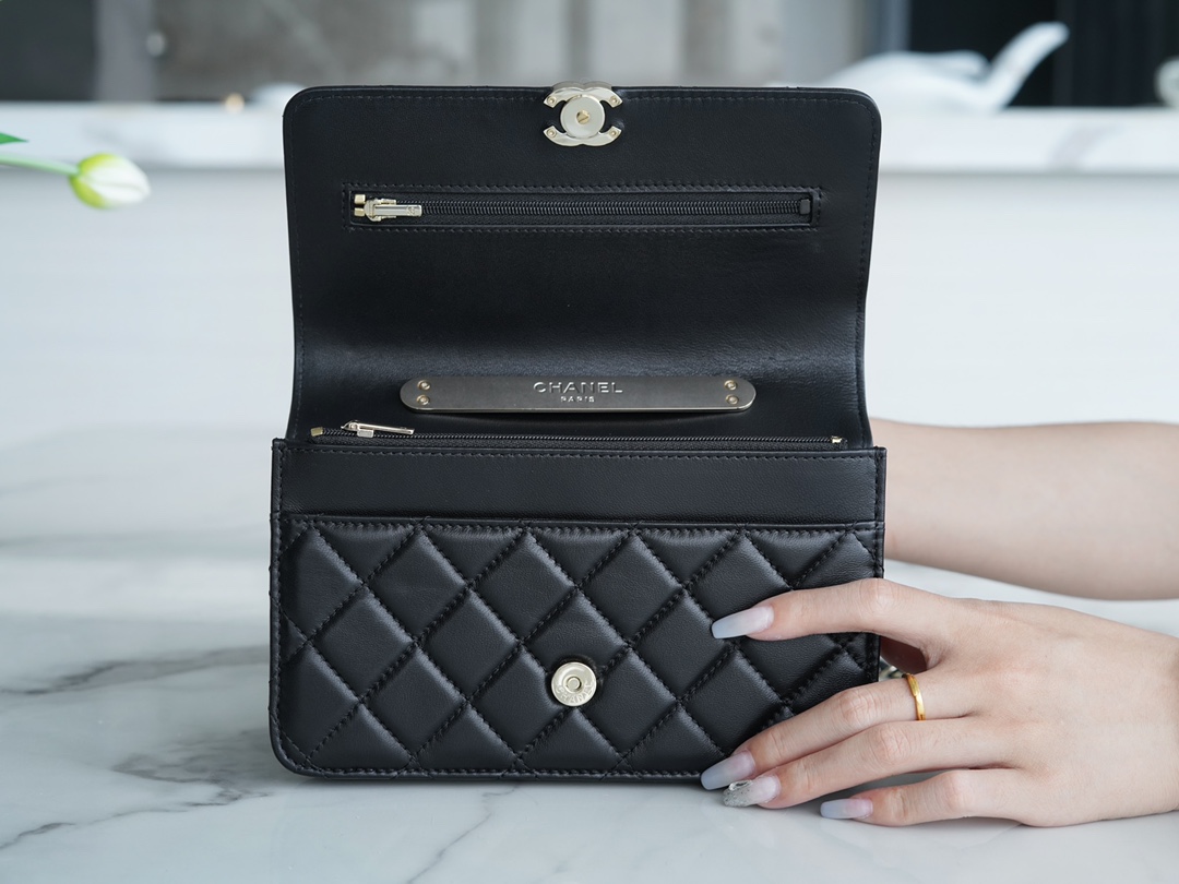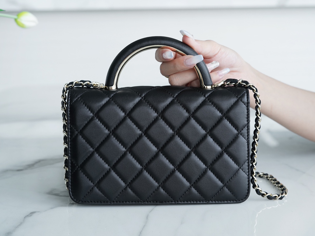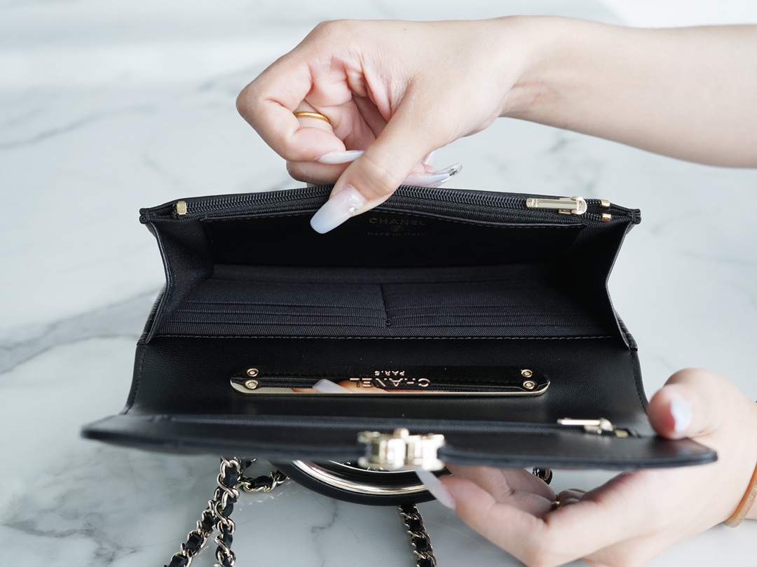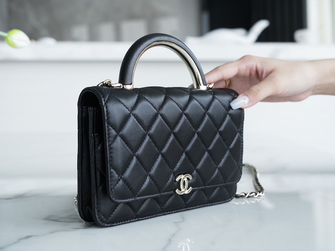 The CHANEL 22A Early Autumn Collection features a WOC (Wallet on Chain) with a metal handle. It has a comfortable and delicate touch, paired with a chubby little handle. The design is simple and interesting, making it convenient and delightful to carry around. It’s versatile, timeless, and always in style.