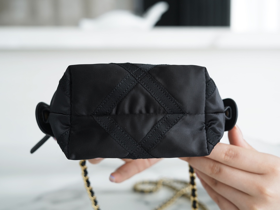 The 22P Nylon Chain Clutch Bag from CHANEL is here! Get ready for the nylon trend~ Nylon material is easy to maintain and not delicate. The bag features a curved handle design with satin ribbon chains on both sides as decoration. The body of the bag combines satin ribbon and nylon to create the classic diamond pattern, breaking away from the traditional design and showcasing a unique charm with the fusion of nylon.