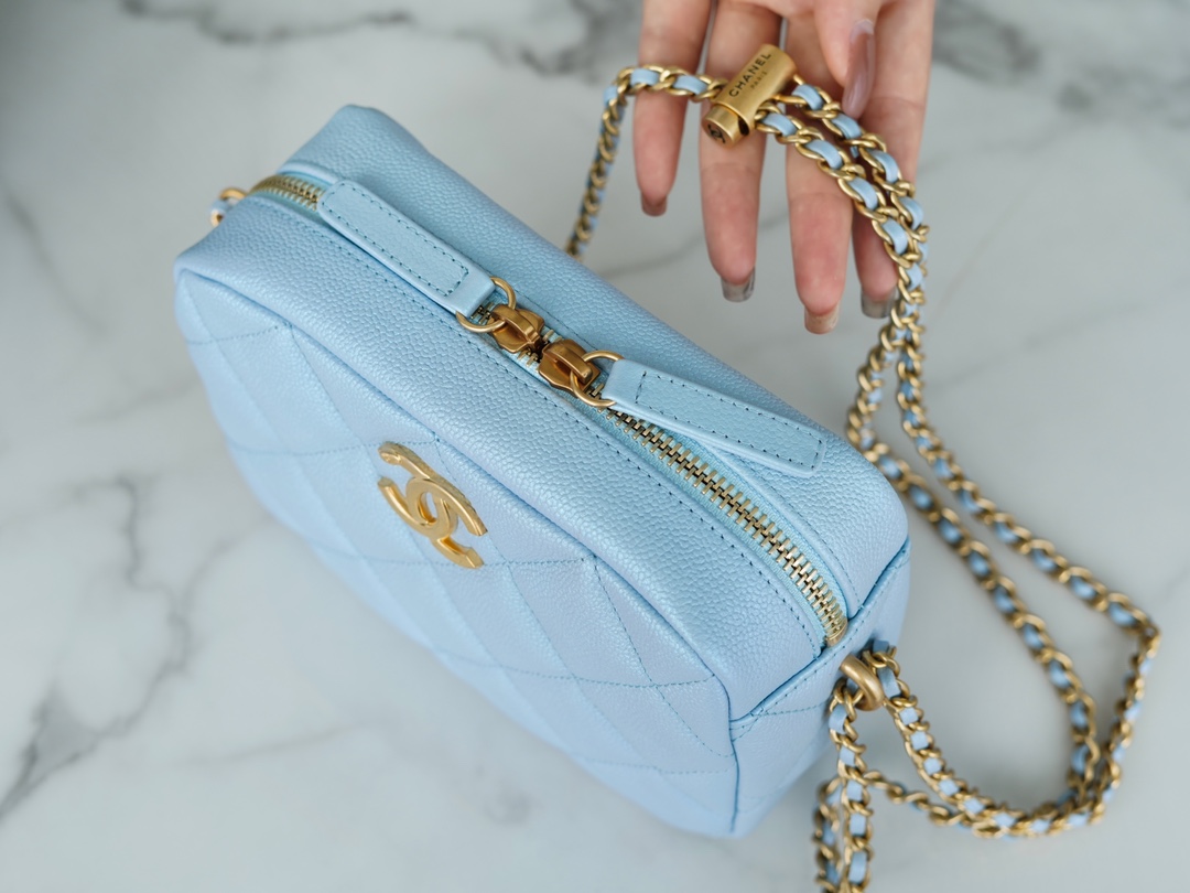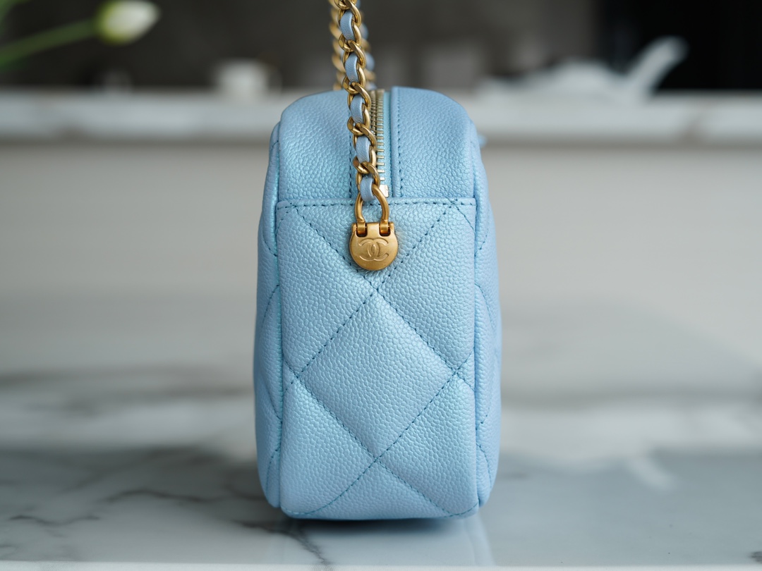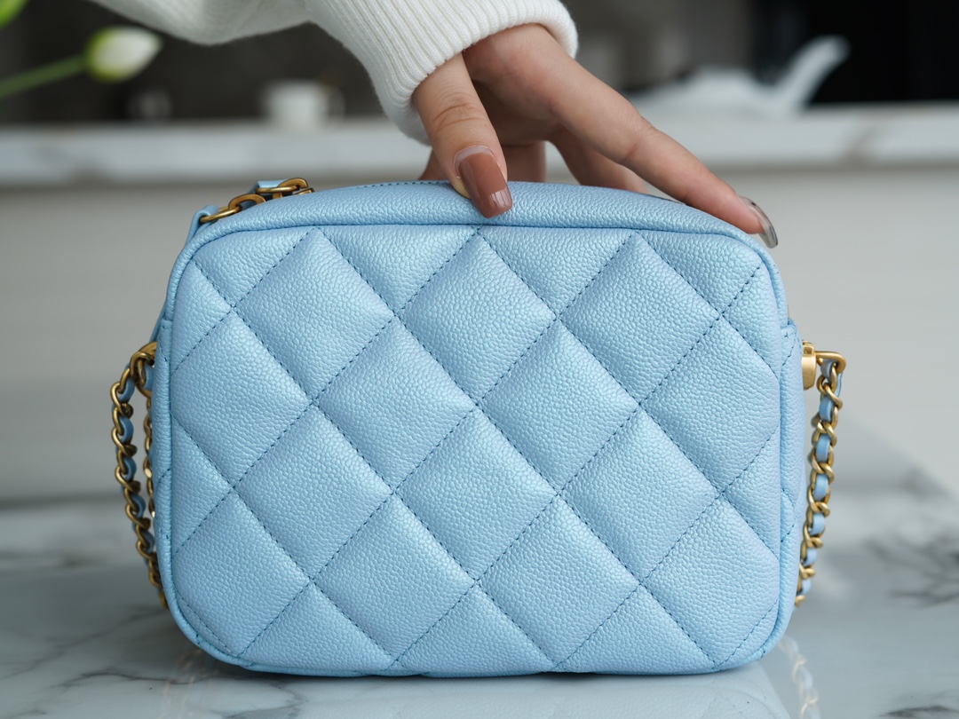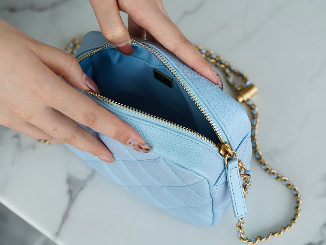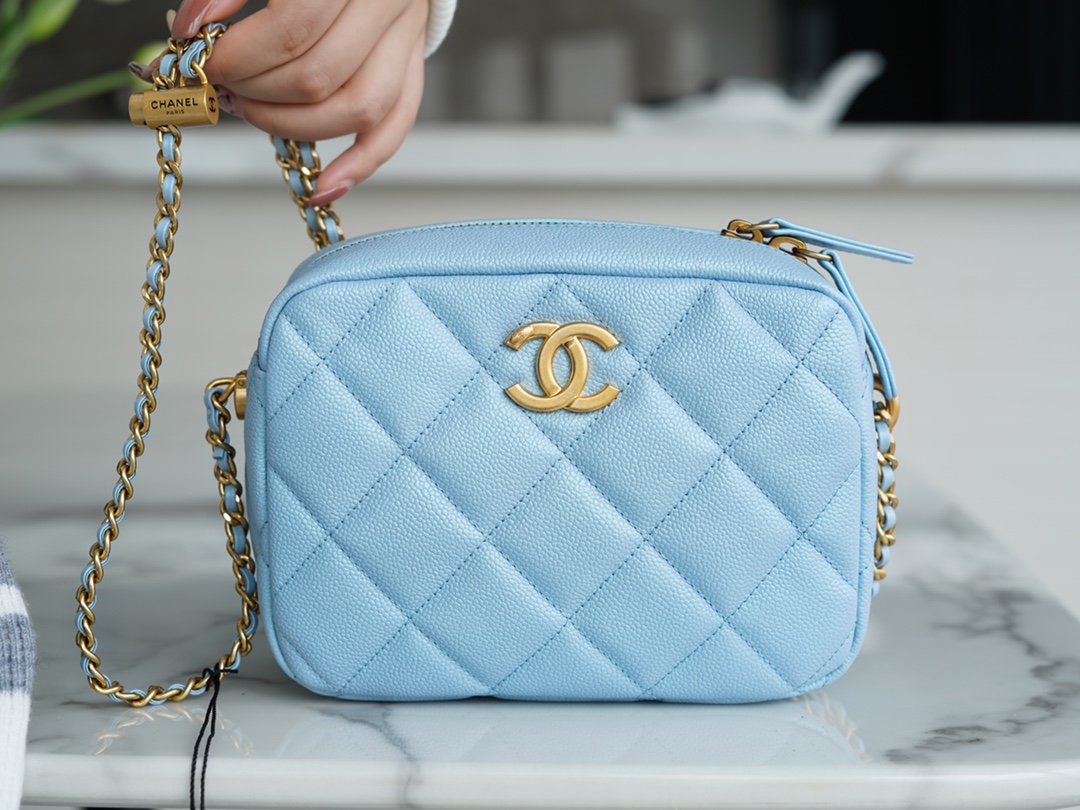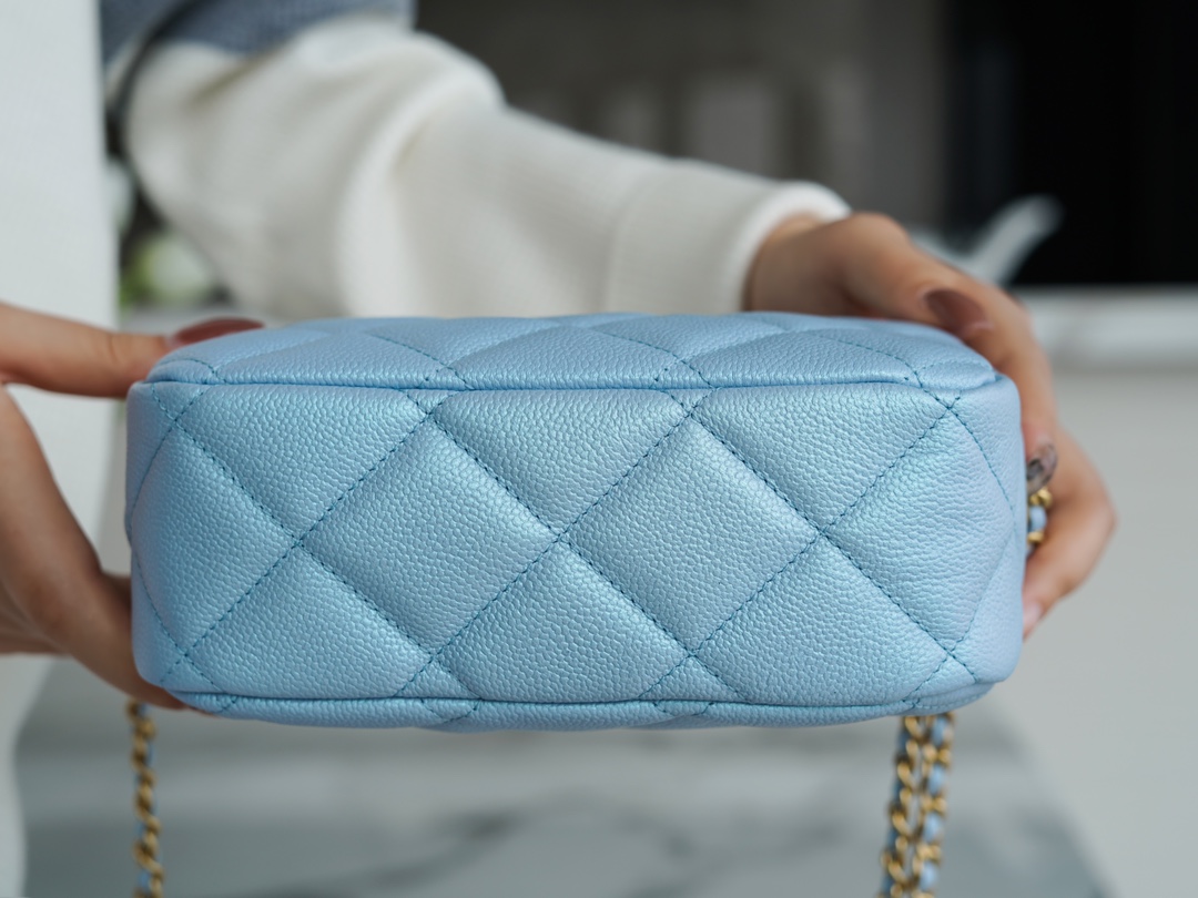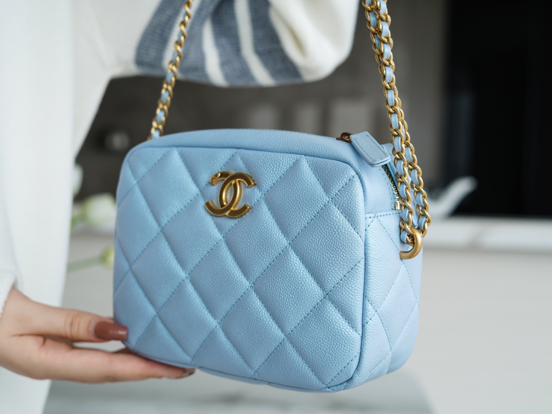 The CHANEL Fall/Winter new bullet shell crossbody bag in iridescent pink is undoubtedly the must-have item of the season. This season’s “C” camera bag is the king of cost-effectiveness, combining all the perfect features. The bullet shell has adjustable length buttons, cleverly designed with exquisite craftsmanship. The lychee-patterned cowhide gives it a pearlescent and enchanting touch, paired with a vintage and stylish sandy gold accent. Handcrafted to be sturdy and durable, this is a must-have item.
