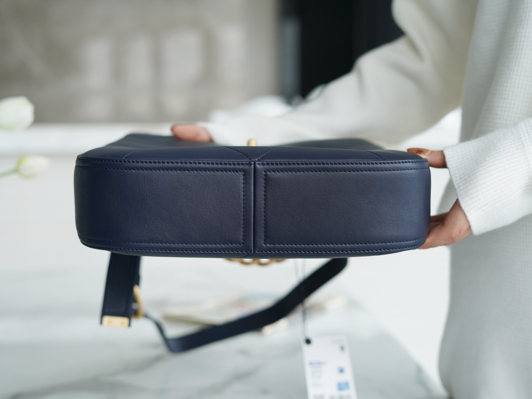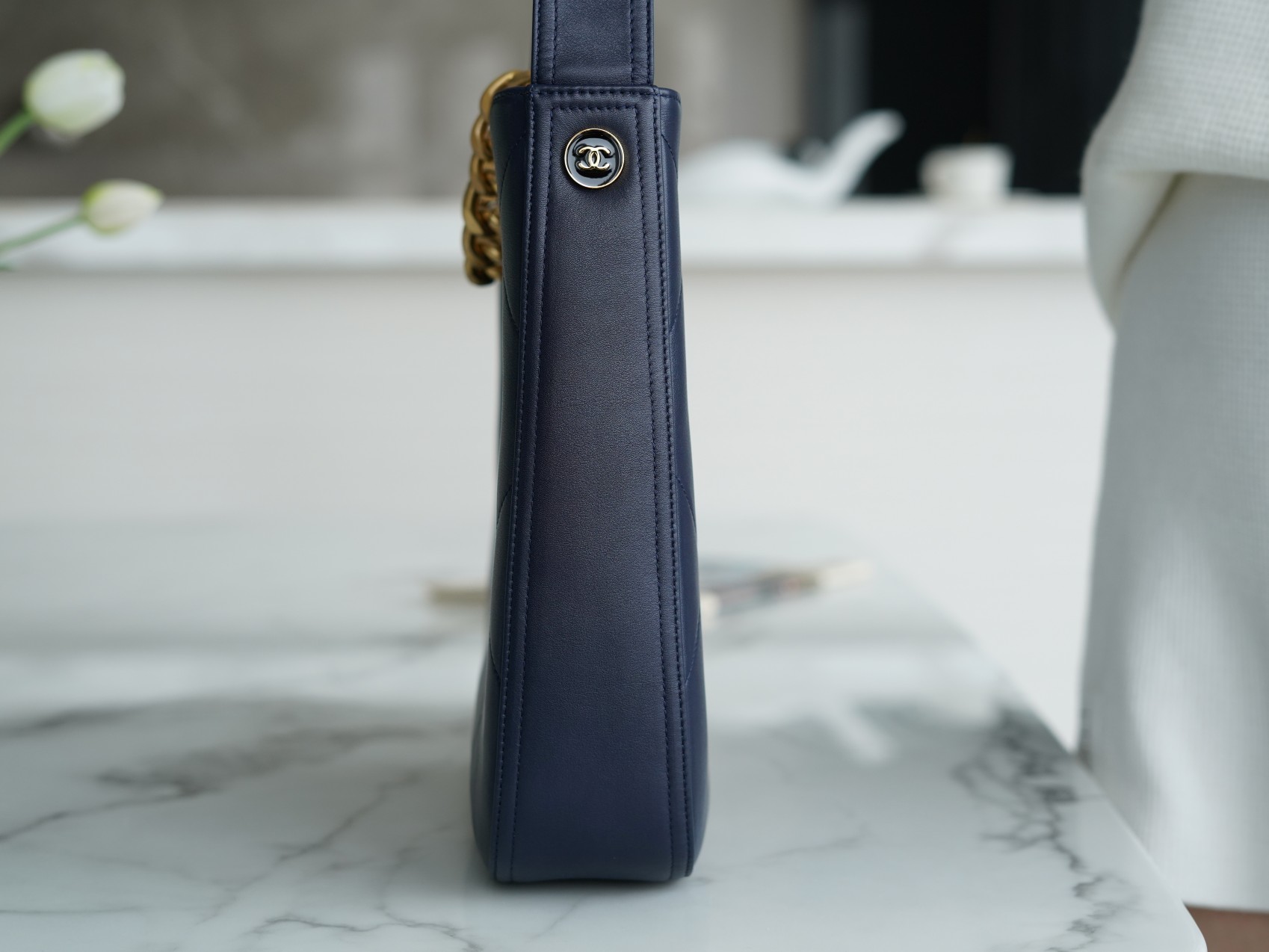 The CHANEL Fall/Winter new collection introduces a playful bohemian bag. This new bohemian bag is absolutely amazing, with its minimalist design and intricate details. It has a rounded shape, wide shoulder strap, and two black badges on each side, giving it a vintage touch. The flap opening design is more convenient than a zipper. The back of the bag is plain and simple, without any decorations. On the front, it is adorned with a gold chain, adding a touch of elegance. Black and gold is an eternal classic! It can be both intellectual and stylish, without any conflict.