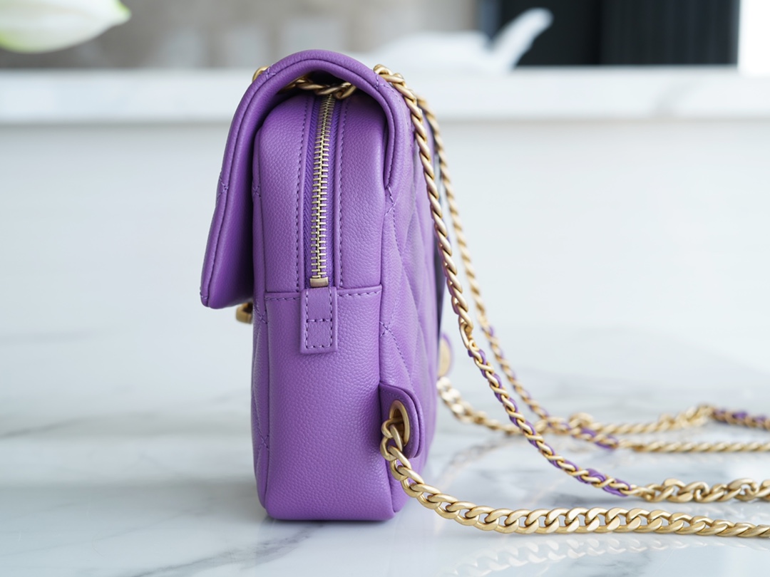 The CHANEL 22P Vintage Black Shoulder Bag is a perfect accessory that liberates your hands. It is elegant, compact, and adorable, without the heaviness typically associated with shoulder bags. The design of the shoulder straps deserves special praise. Although they are made of metal chains, they have been widened to provide comfort and prevent shoulder fatigue, making it easy to carry around. The bag has a satisfactory capacity and can accommodate all your daily essentials.
