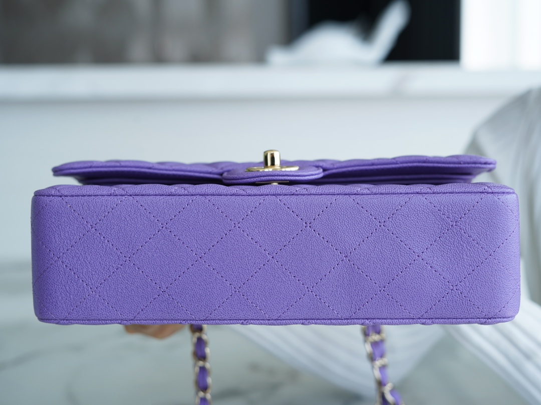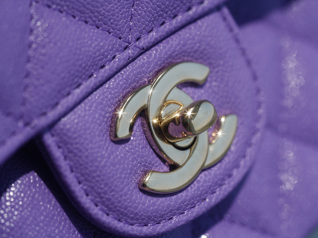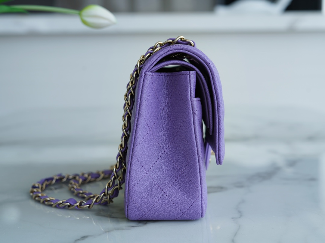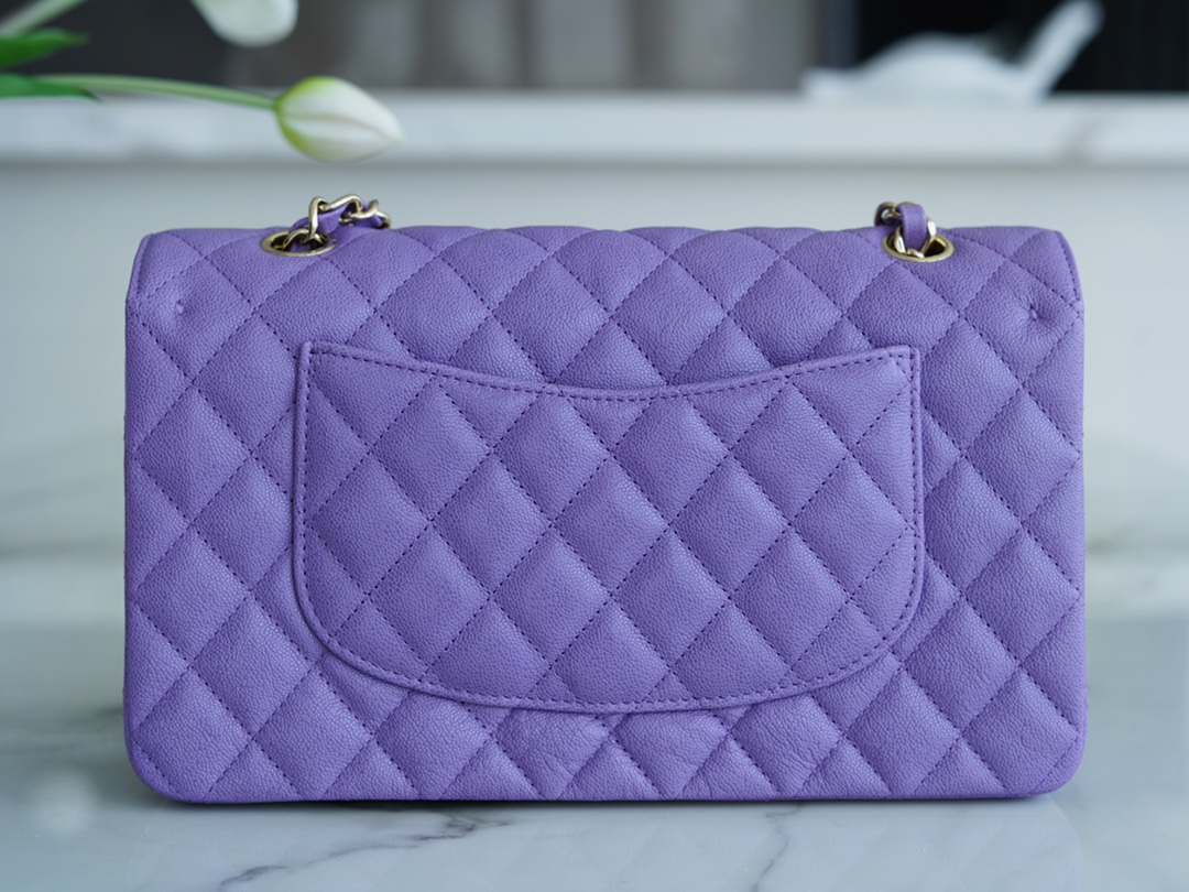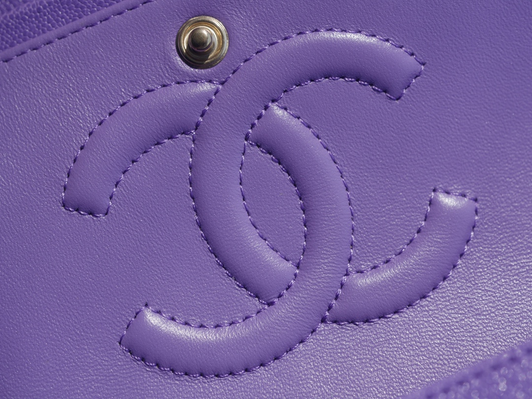CF Classic Flap Caviar Leather Medium Size,The leather used for this handbag is made from the finest newborn calf, known as caviar leather. It embodies Chanel’s pursuit of a luxurious tactile experience. The leather features extremely fine grains, a washed appearance, a glossy sheen, and irregular vintage creases, making it truly unique. One word: soft.