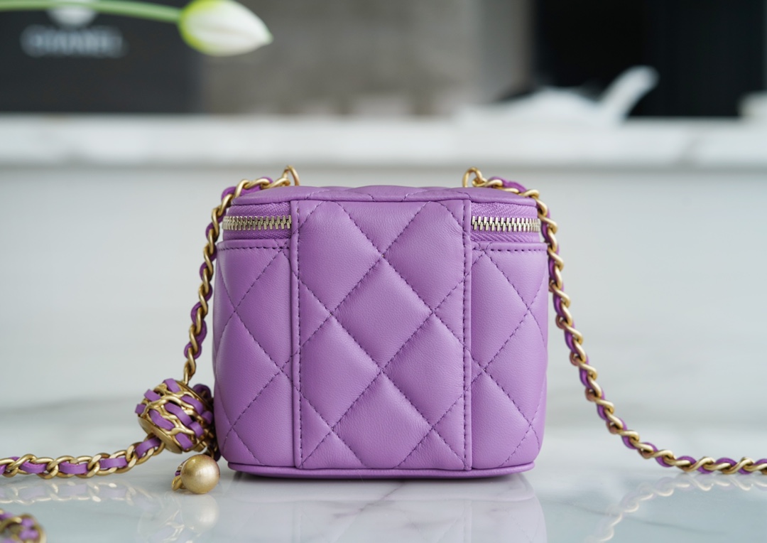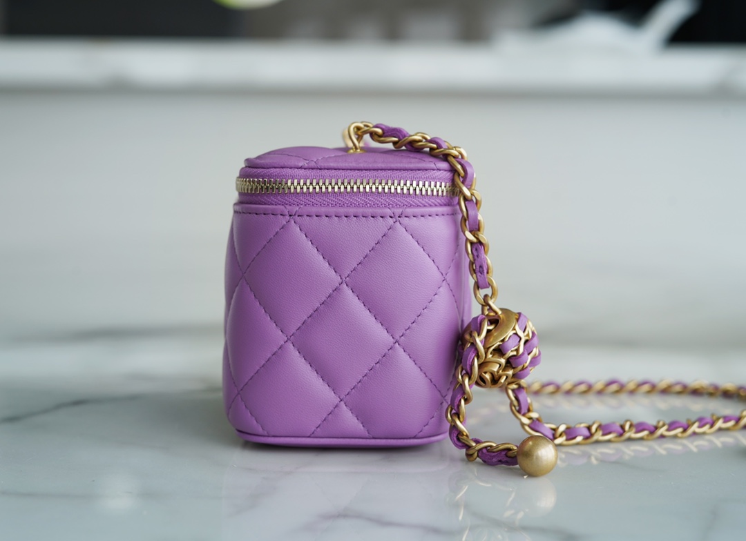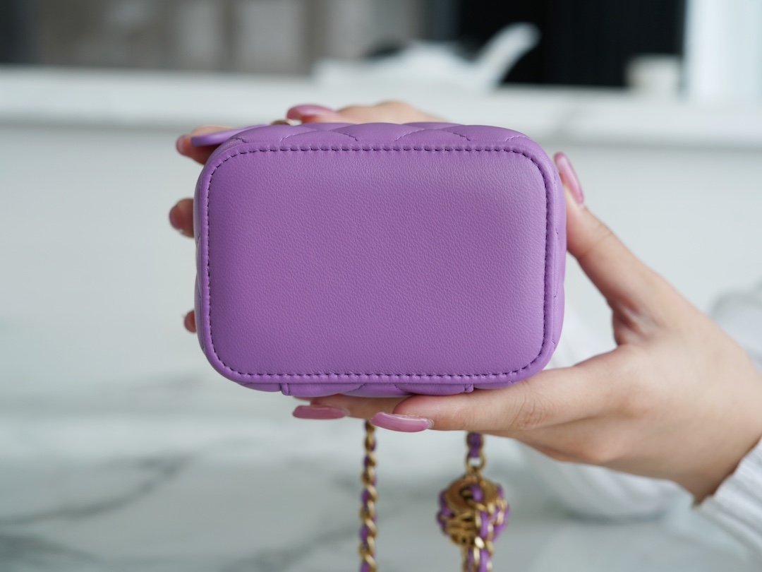 The CHANEL 22S Woven Golden Ball Box Bag is crafted from soft and delicate lambskin leather, featuring the classic diamond pattern design. The leather is intertwined with a metal chain adorned with small “walnut” golden balls. The entire golden ball is replaced with interwoven leather elements, enhancing the craftsmanship. The chain can be adjusted in length according to your preference. The bag also includes a built-in small mirror, which is extremely thoughtful and allows you to illuminate your beauty anytime, anywhere. It is a complete and exquisite little darling, without a doubt!
