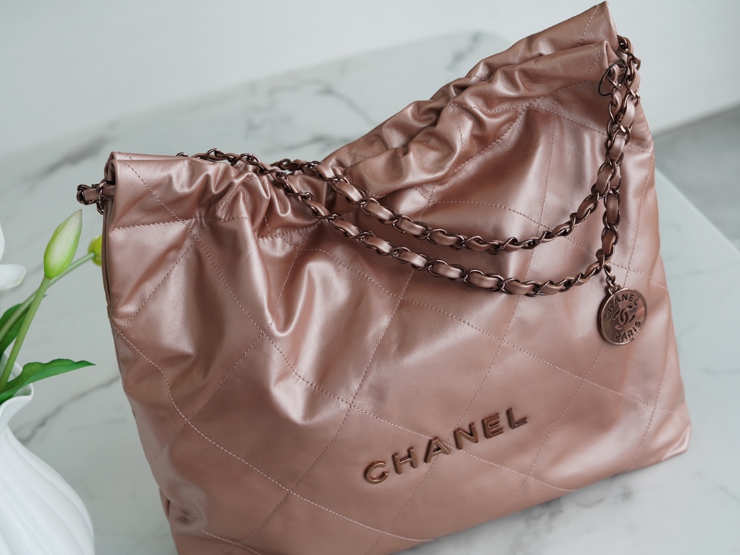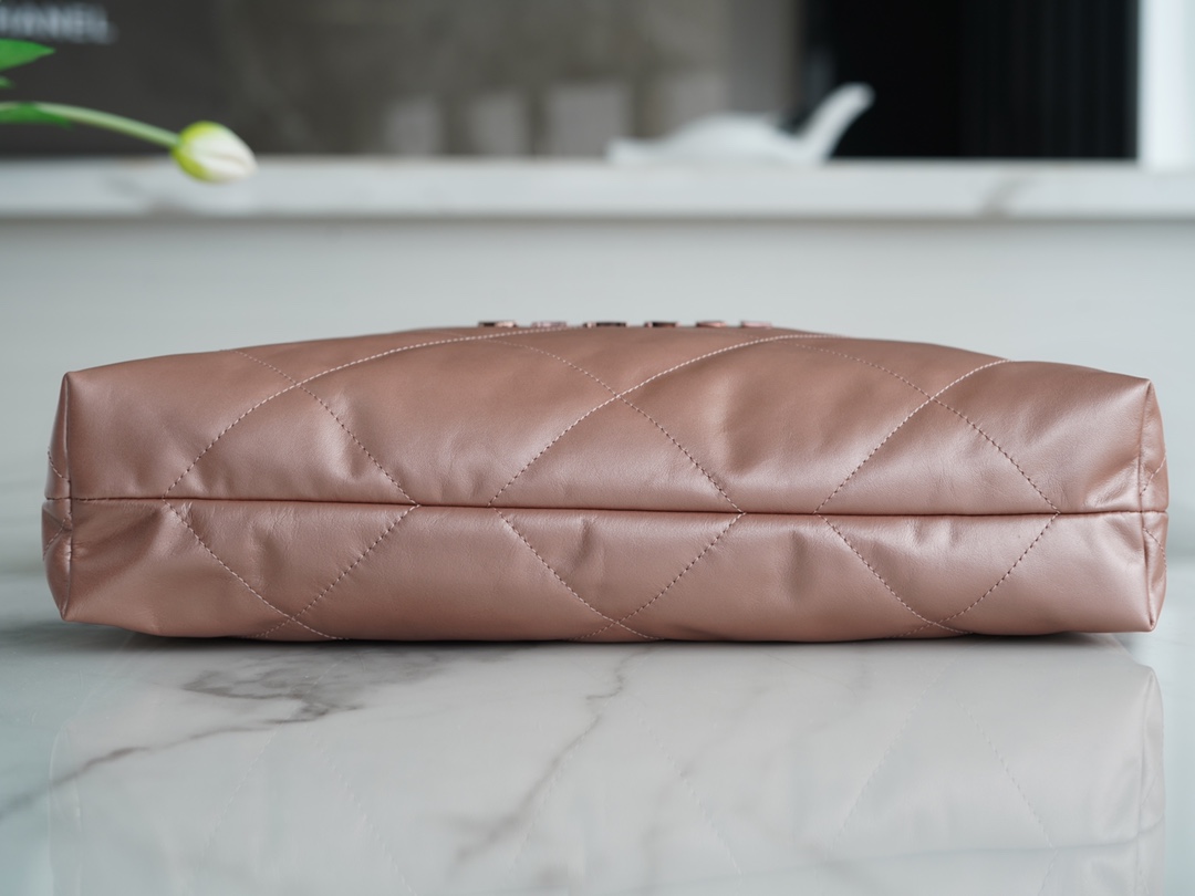 Chanel 22P Haute Couture Atelier 22 Handbag, made with genuine premium leather in a medium size. This handbag is named after the birth year, 2022, and is also a tribute to the 100th anniversary of the introduction of the No.22 perfume in 1922. It features flat diamond quilting and leather-woven chain elements, adorned with a hollowed-out double C pendant. The vintage-chic design allows for effortless and versatile styling, seamlessly combining simplicity and comfort, making it the perfect companion for the spring season.