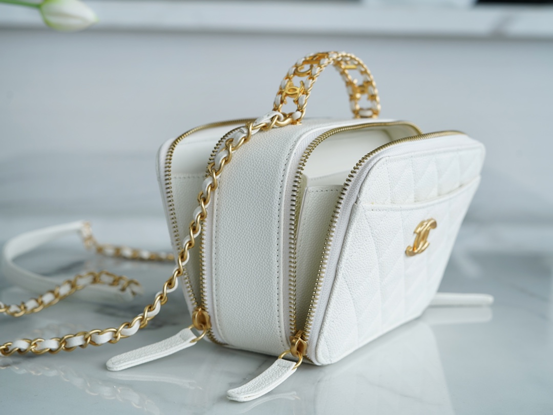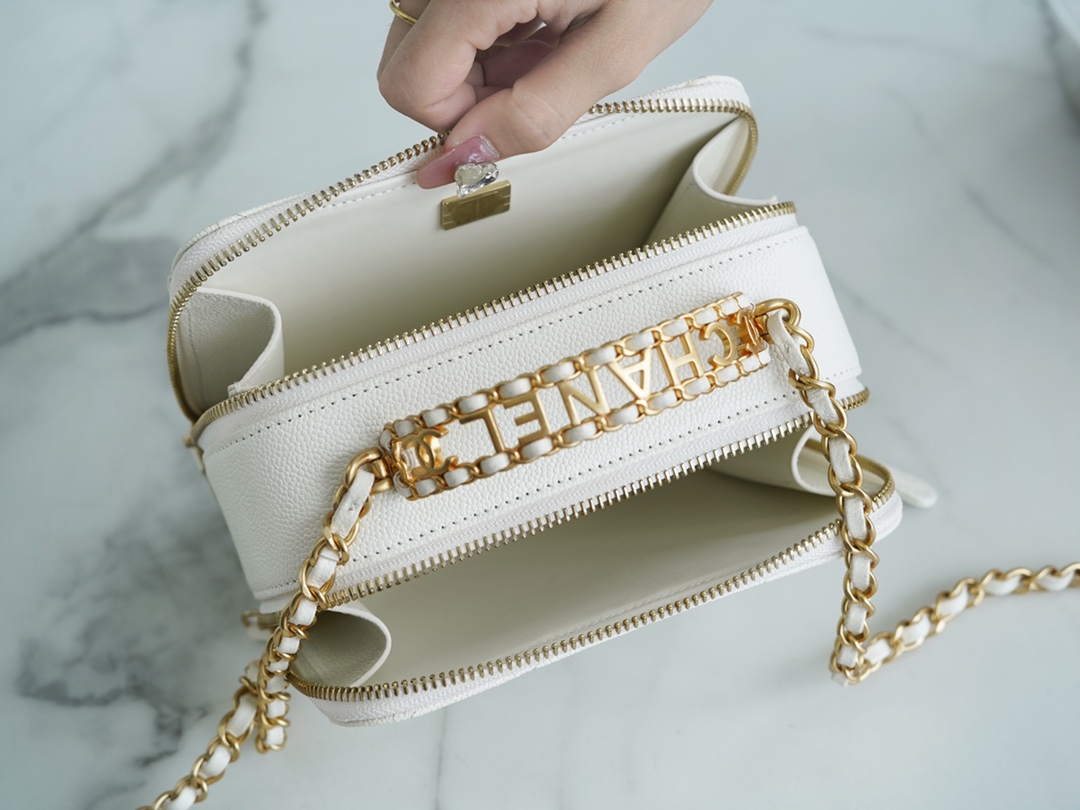 Chanel 22S Spring/Summer Hollow Handle Camera Bag White Made with premium Italian 【INCAS】 top-grade calfskin, the diamond pattern is full and firm, with a good gloss and a perfect balance of toughness and elegance, offering excellent durability‼️ It exudes a rich and luxurious texture. It can be opened from both sides, with a spacious capacity. Black is classic and timeless! Delicate and delicate, it is versatile and suitable for daily commuting and outings.