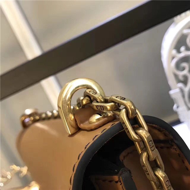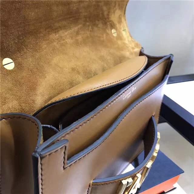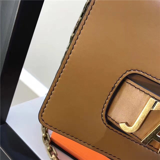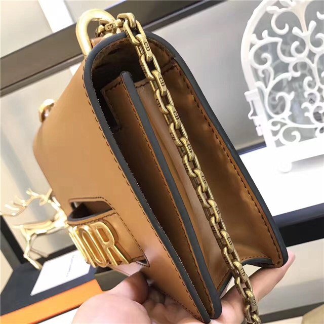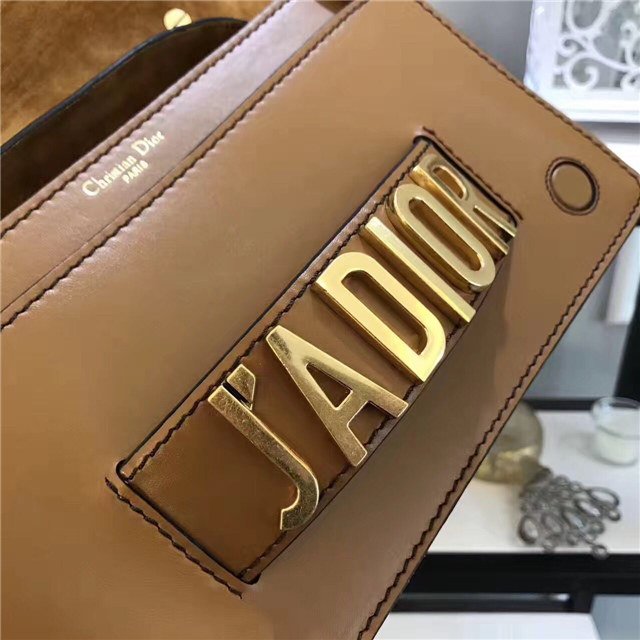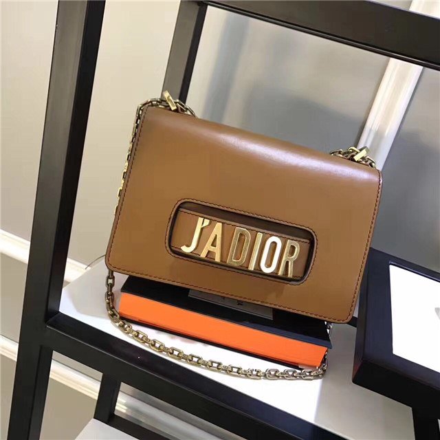 J”ADIOR flap bag with chain in Brown calfskin