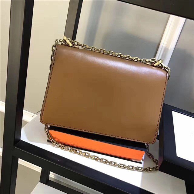 Flap bag with slot handclasp in Brown Calfskin