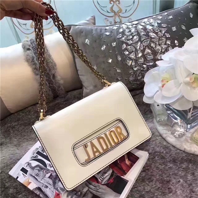 J”ADIOR signature and detachable drawstring aged gold-tone metal chain.