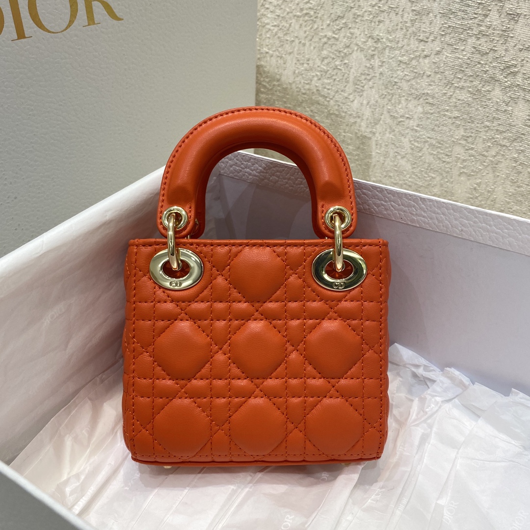 CHRISTIAN DIOR Lambskin Cannage Mini Lady Dior
