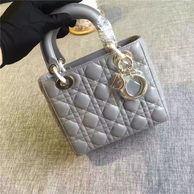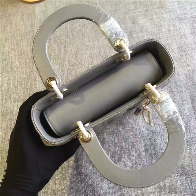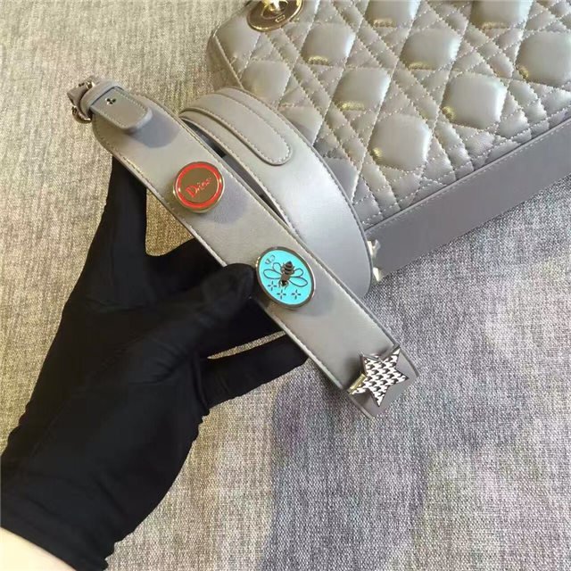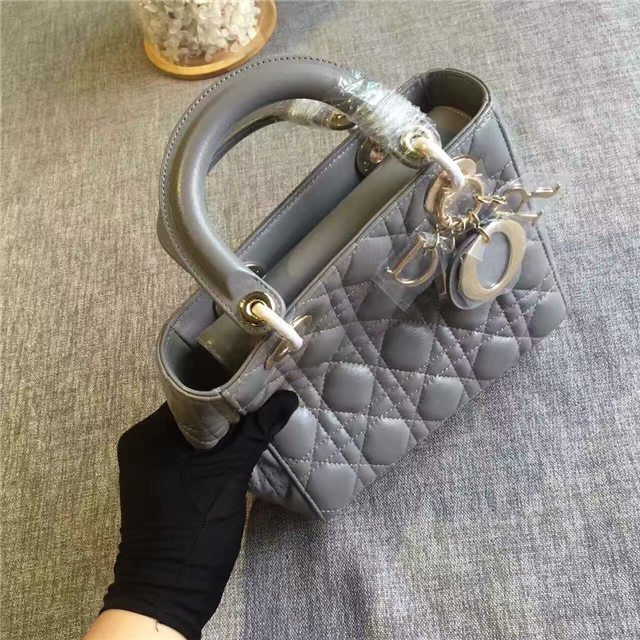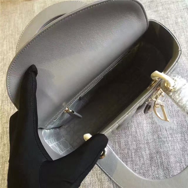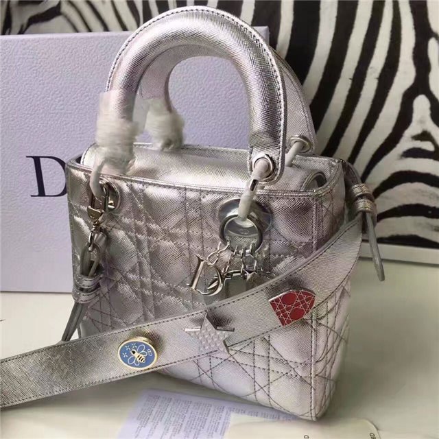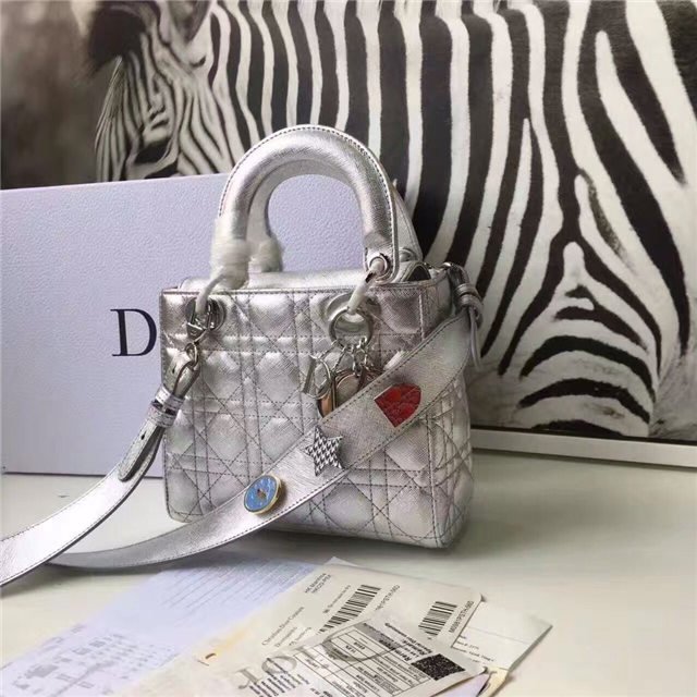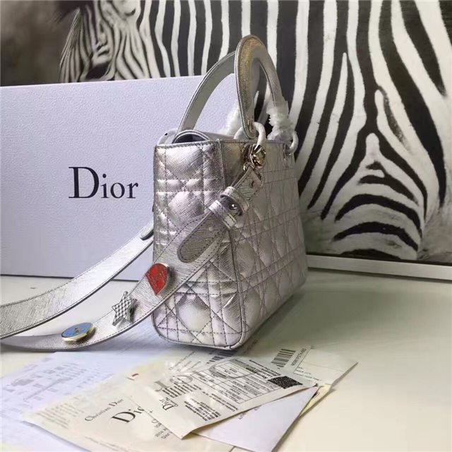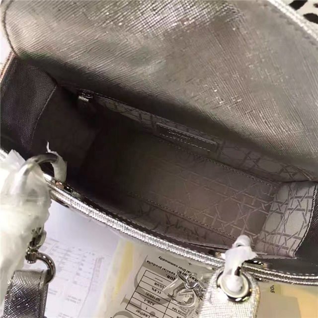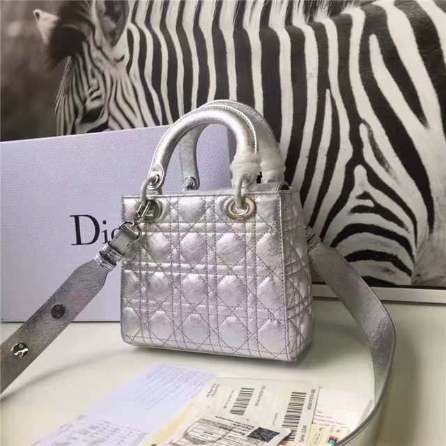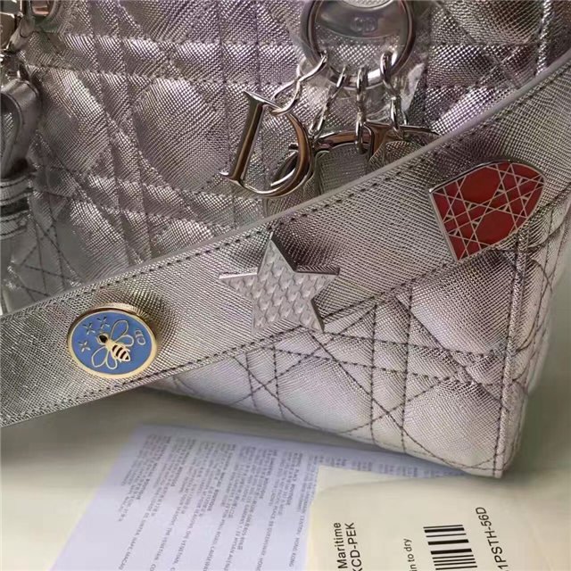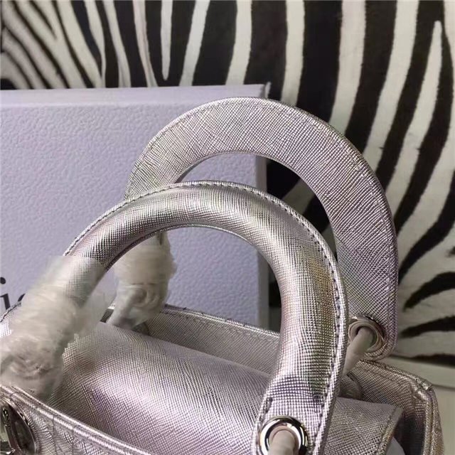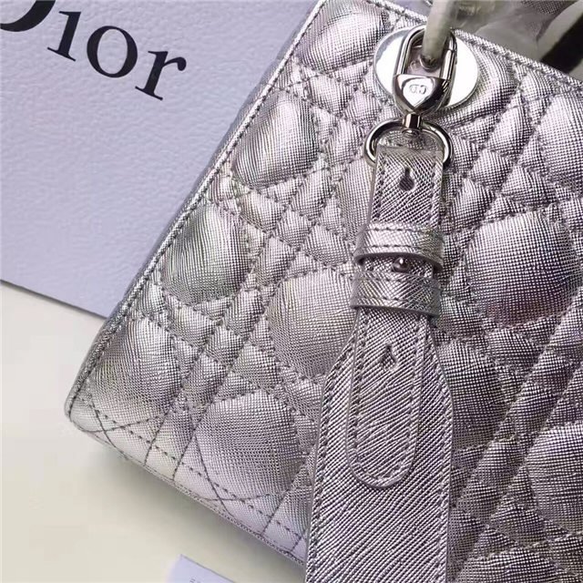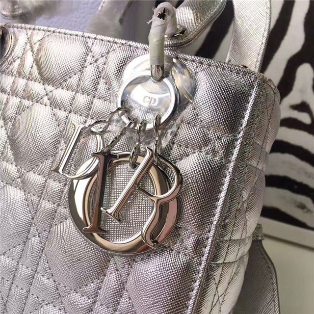 “Lady Dior” bag in Silver-tone grained leather