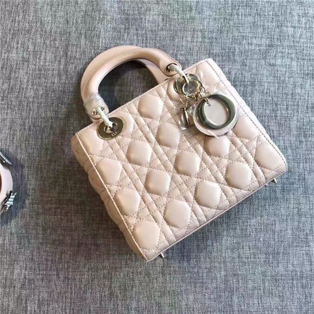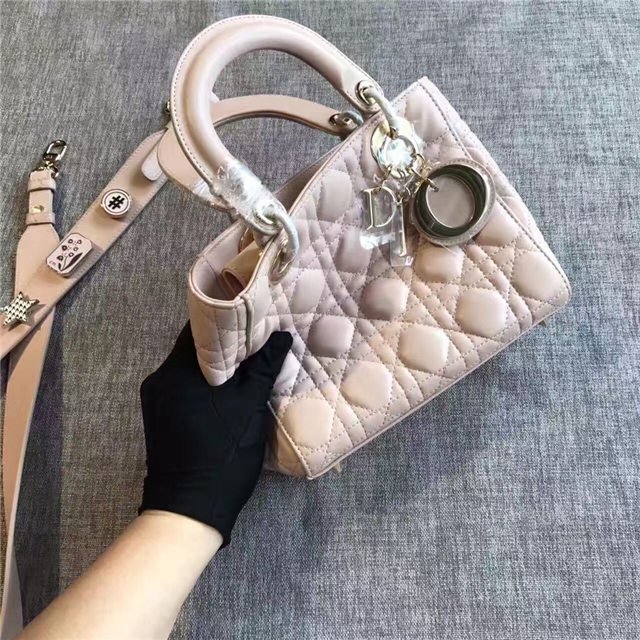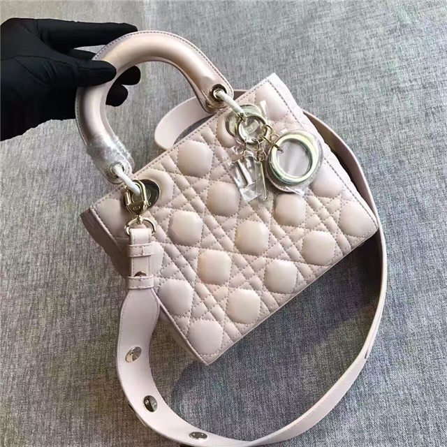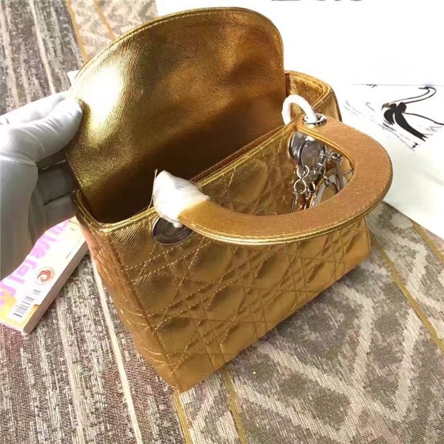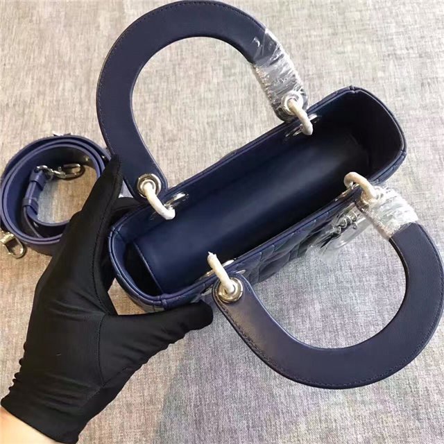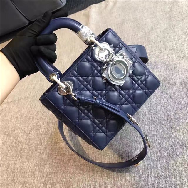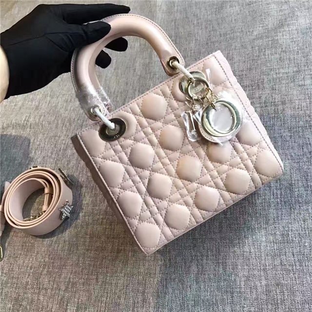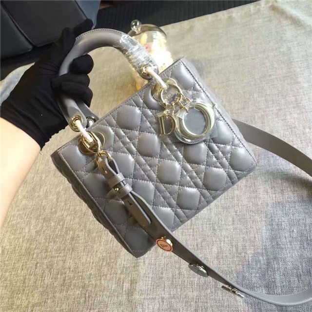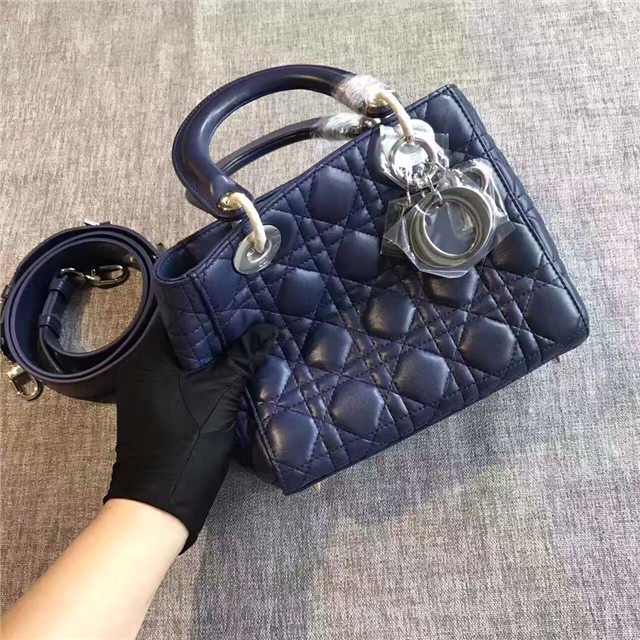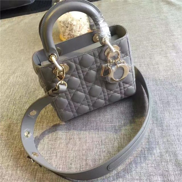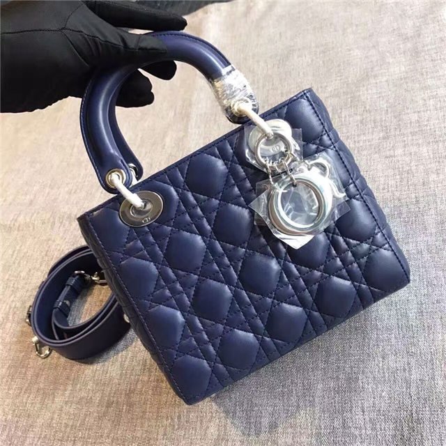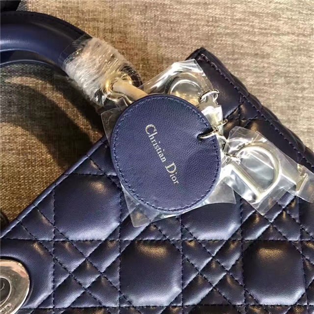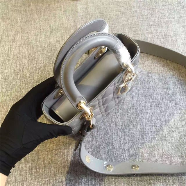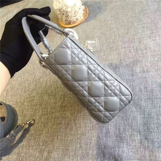 “Lady Dior” bag in Silver-tone grained leather