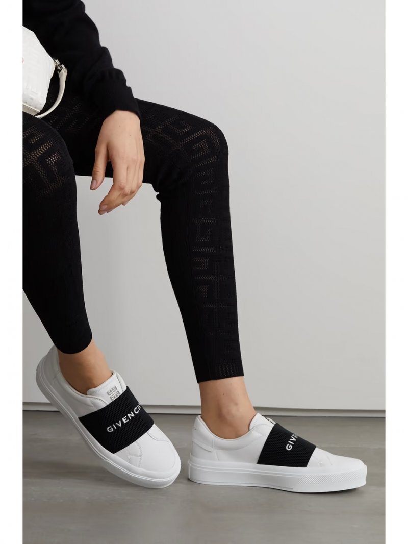 - White leather (Calf), black elasticated webbing