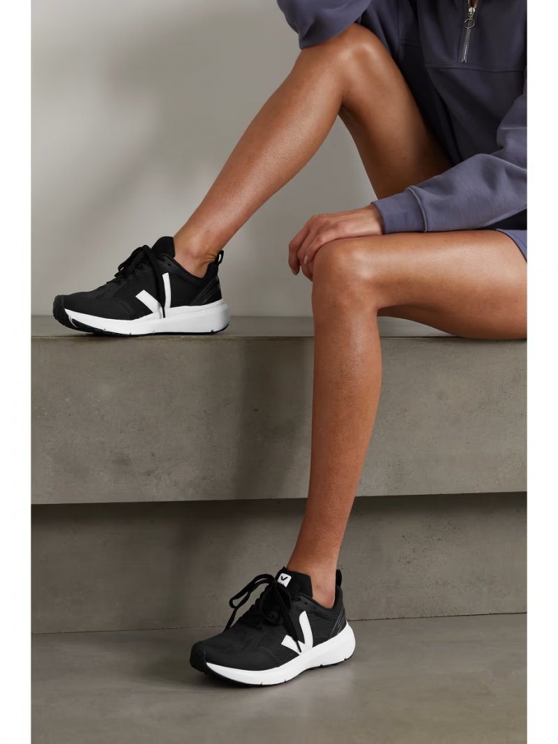 - Black Alveomesh, black and white faux leather