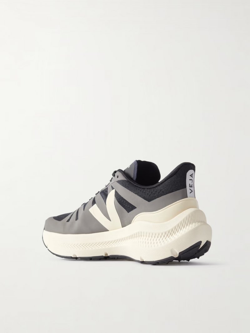 - Black recycled mesh, gray and ecru TPU