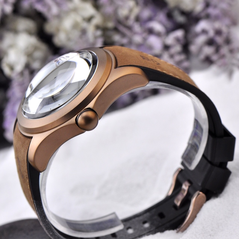 This is a Corum Bubble watch from the Kunlun Bubble series, returning with a brand new colored dial design. The new version of the watch has a diameter expanded to 46mm and features a spherical crown. It has a thickness of 18.8mm, with the crystal alone measuring 8mm. The towering crystal has a magnifying lens function, which can enlarge and distort the visual effect of the dial. The curved case fits closely to the wrist, ensuring the most comfortable wearing experience.