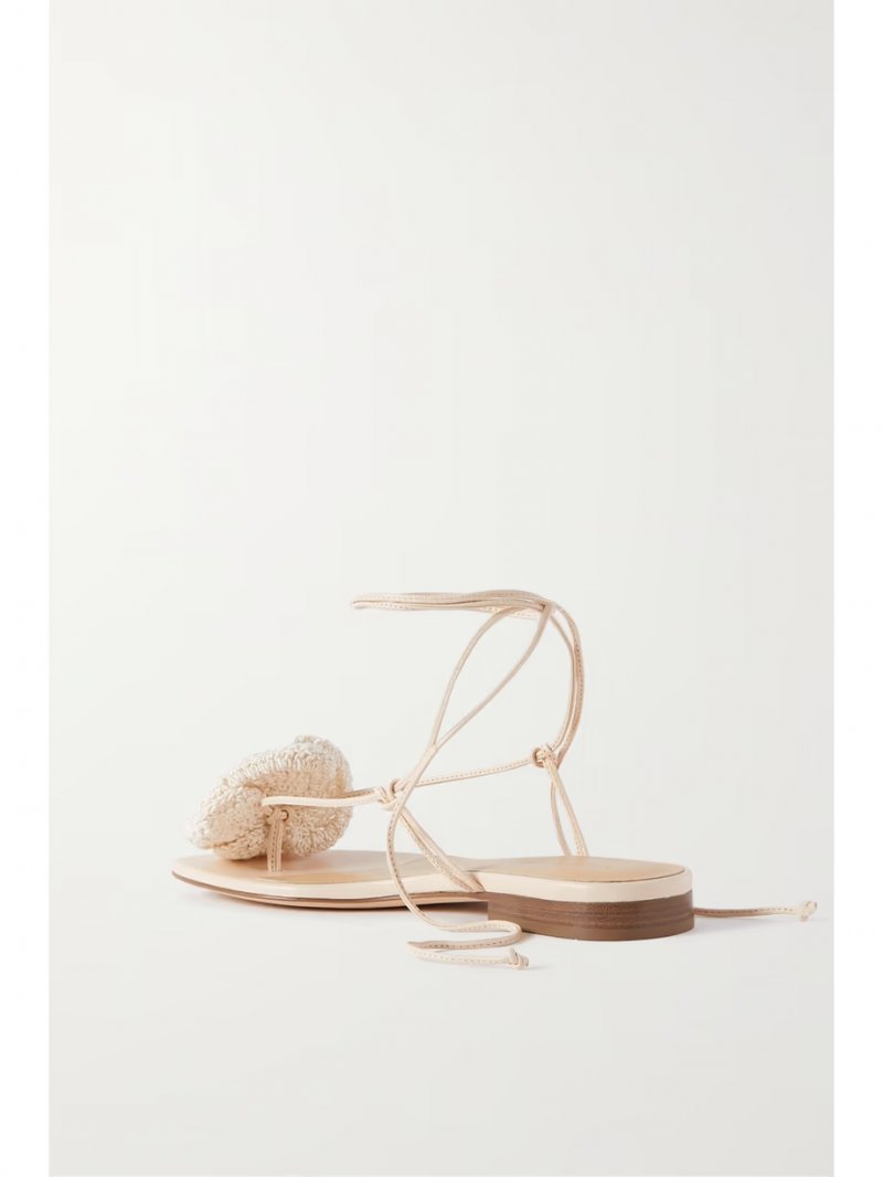 - Cream leather and crocheted cotton-blend