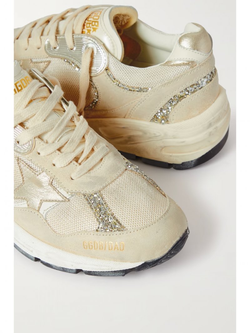 - Tonal-beige mesh, suede and leather (Cow), silver glittered suede, silver leather (Cow)