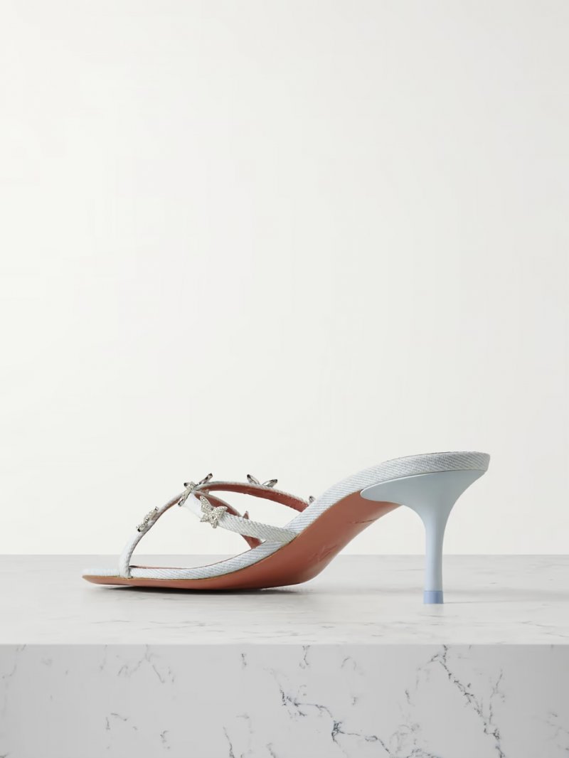 - Light-blue denim and leather
