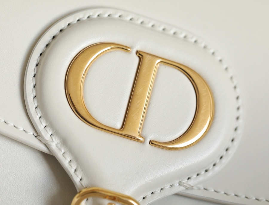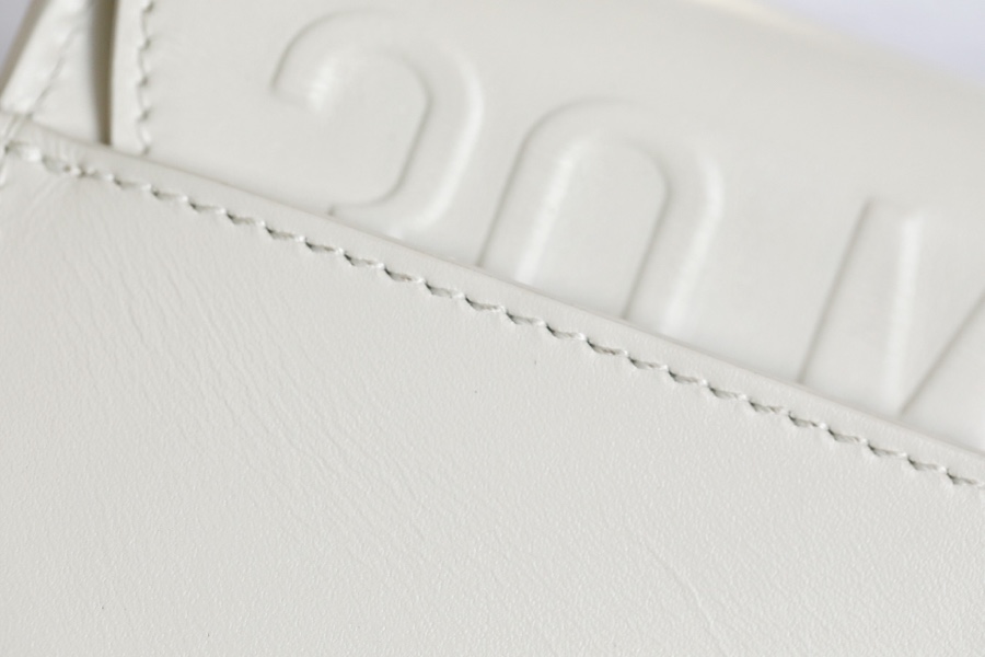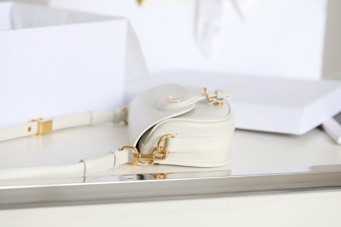The handbag is a brand new item for this season, showcasing the modern charm of a sophisticated silhouette and harmonious proportions. It is meticulously crafted from glossy off-white calfskin leather, with a suede lining that adds a soft texture, adorned with vintage gold-tone hardware accents. It comes with a detachable and adjustable buckle shoulder strap, along with the iconic military-style clasp, allowing it to be carried by hand, worn on the shoulder, or crossbody. It adds a touch of elegance to both everyday and sporty style outfits.