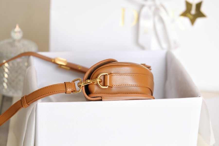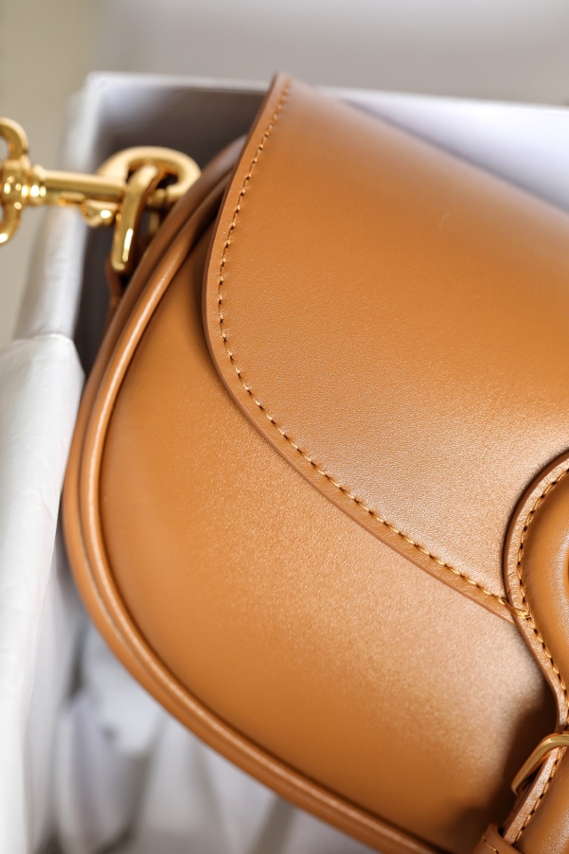 The handbag features an elegant silhouette and balanced proportions that showcase the modern charm of a shoulder bag. It is meticulously crafted from caramel-toned glossy calfskin leather, with a suede lining that adds a soft and luxurious texture. The bag is adorned with vintage gold-tone hardware accents. It comes with a detachable and adjustable buckle shoulder strap and features the iconic military-style clasp. It can be carried by hand, worn on the shoulder, or crossbody, adding a touch of style to both everyday and sporty outfits.
