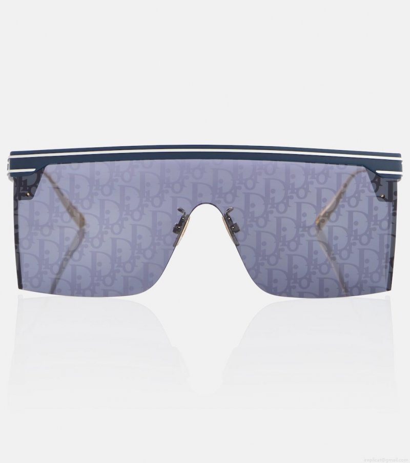 These DiorClub M1U sunglasses are a chic take on summertime logomania from DIOR Eyewear. The acetate design features branded grey lenses in a flat-brown visor silhouette, and the label's full moniker along the navy blue arms.