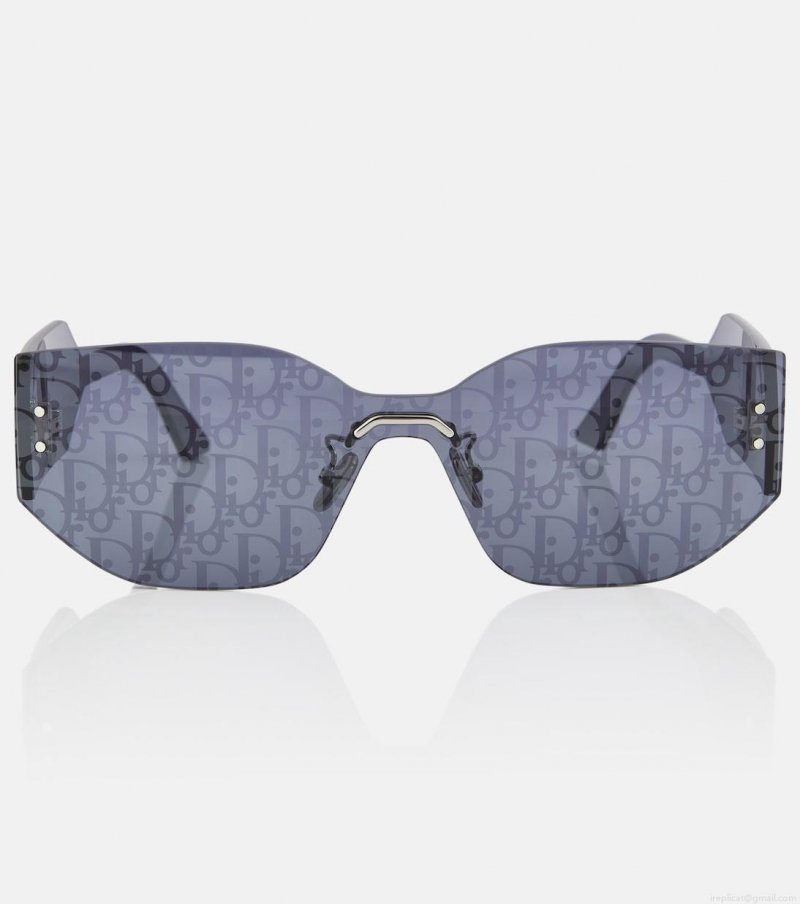 The DiorClub M6U sunglasses from Dior Eyewear are made in Italy in a rectangular-shaped shield silhouette. The tinted blue lenses feature a graphic Dior print for a contemporary look and brand lettering at the temples.