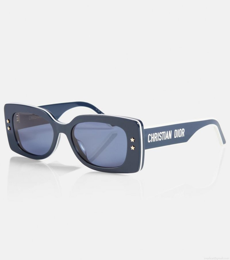 Crafted in Italy from shiny blue acetate, the DiorPacific S1U sunglasses by Dior Eyewear feature rectangular frames, oval lenses, and thick temples with the brand's logo.