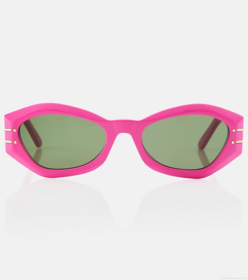The DiorSignature B1U sunglasses from Dior Eyewear are defined by silver-tone logo inlays adorning the temples. Made in Italy from pink acetate, they have an oval silhouette with geometric edges and green lenses.