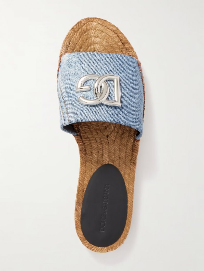 Embellished denim espadrille slides
