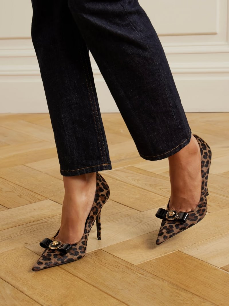 - Leopard-print calf hair, black patent leather