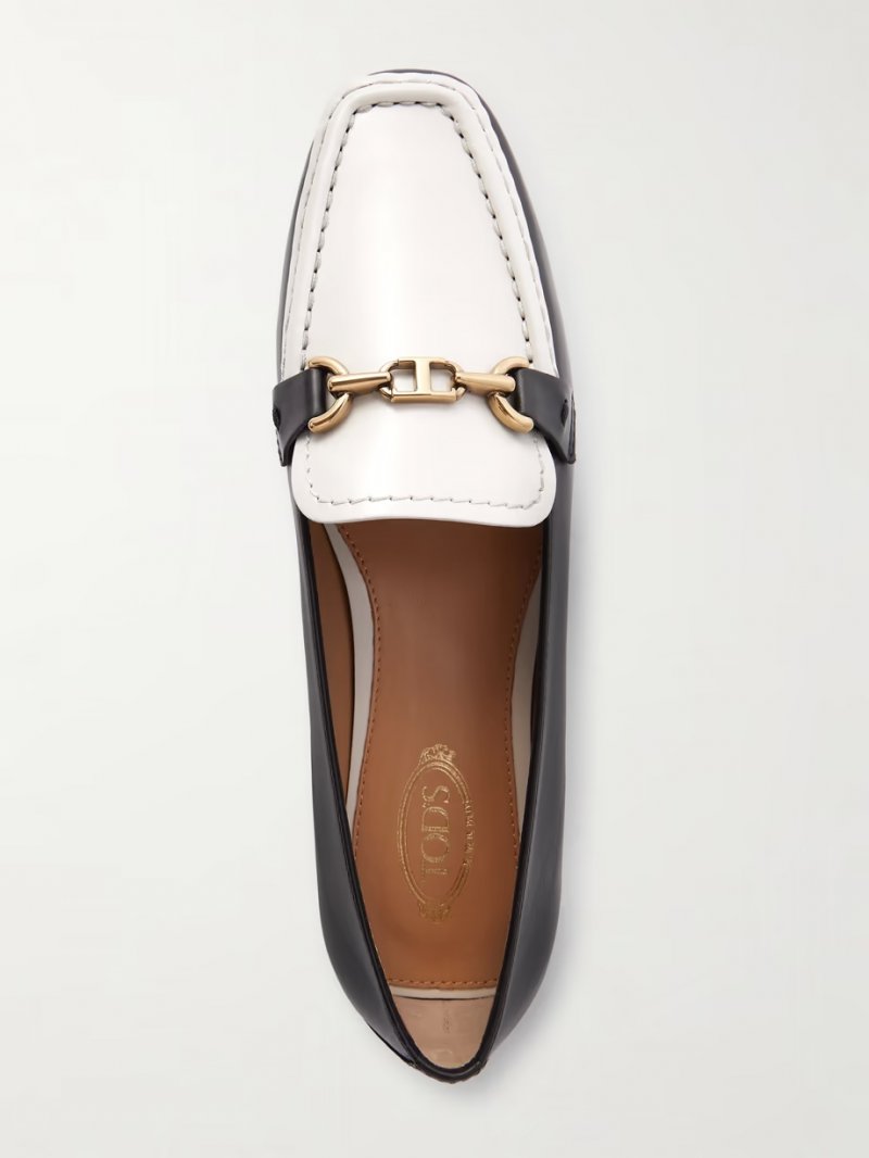 Embellished two-tone leather loafers