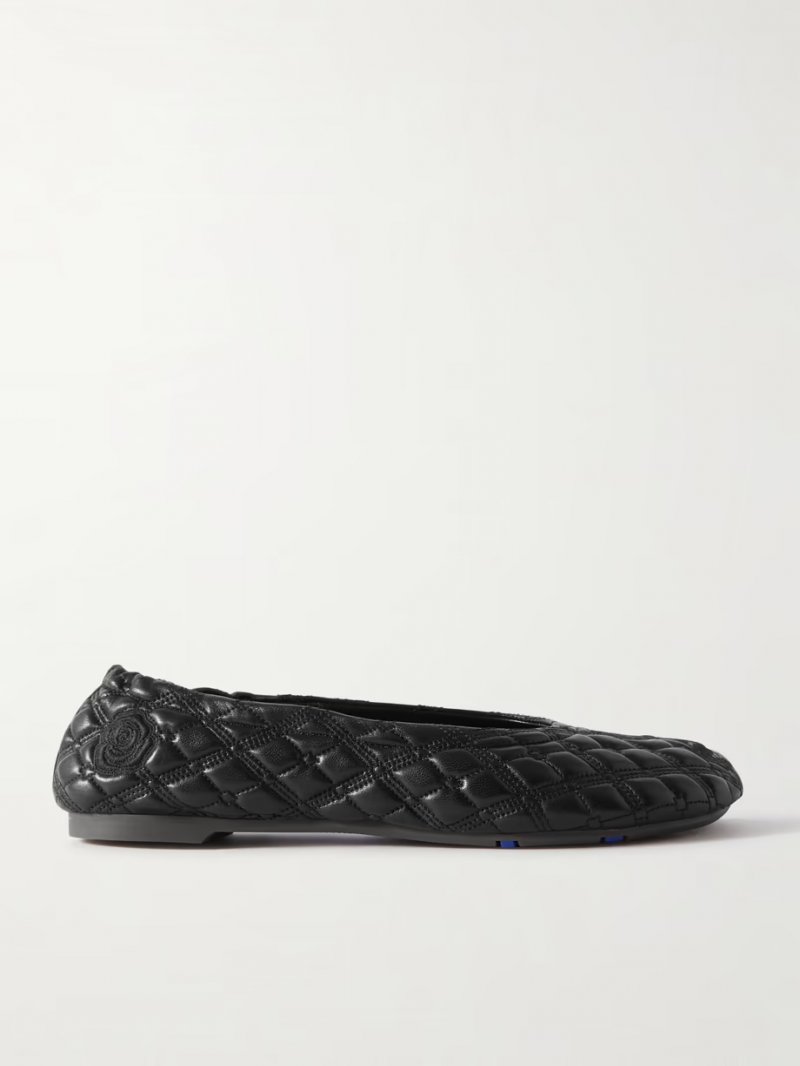 • Embroidered quilted leather ballet flats