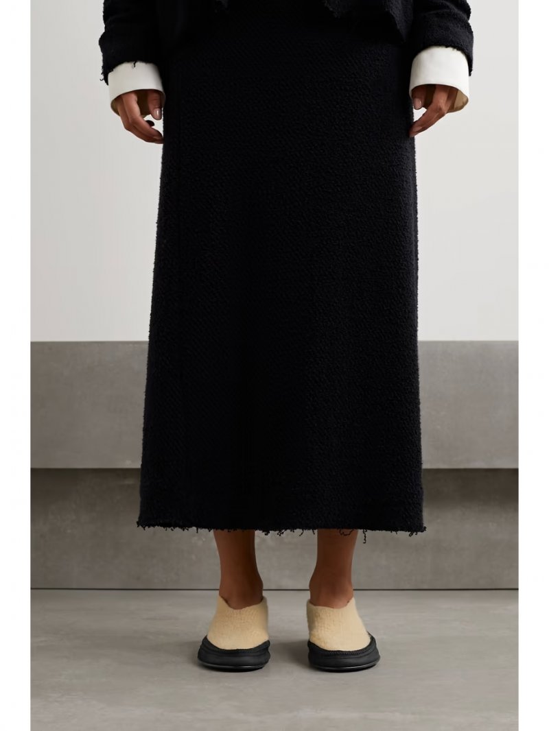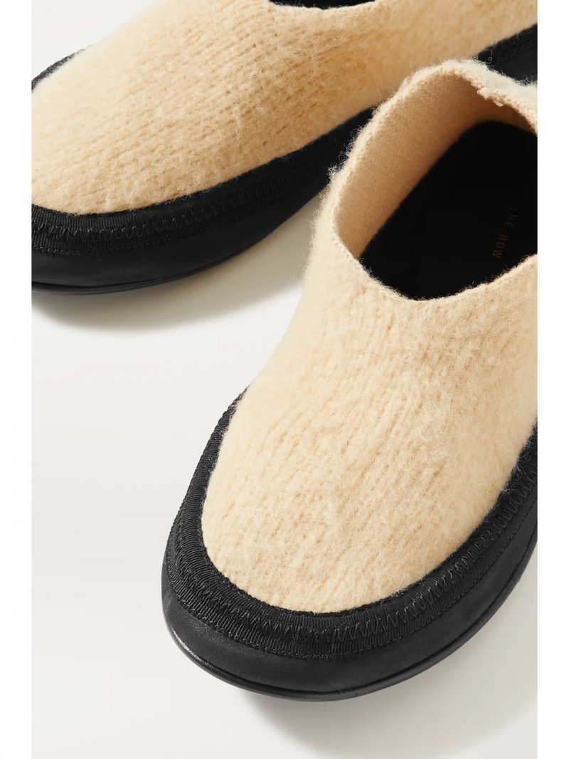 - Cream cashmere, black grosgrain and suede