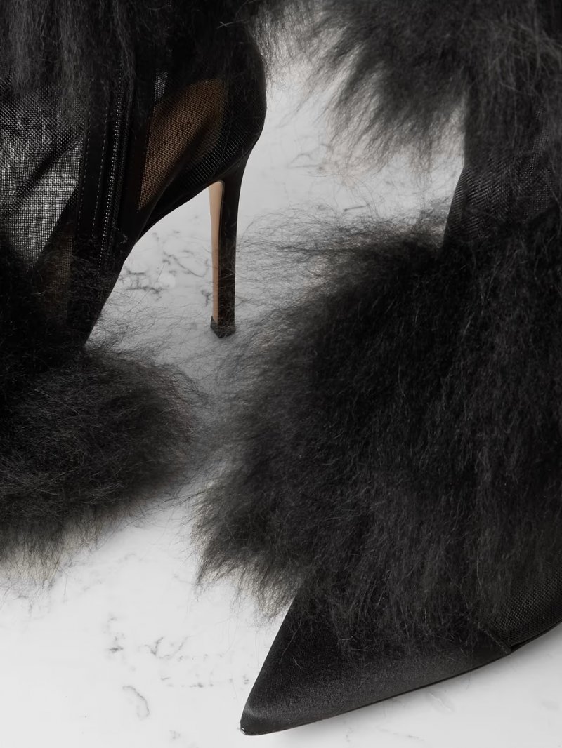 - Black mesh, satin and faux fur