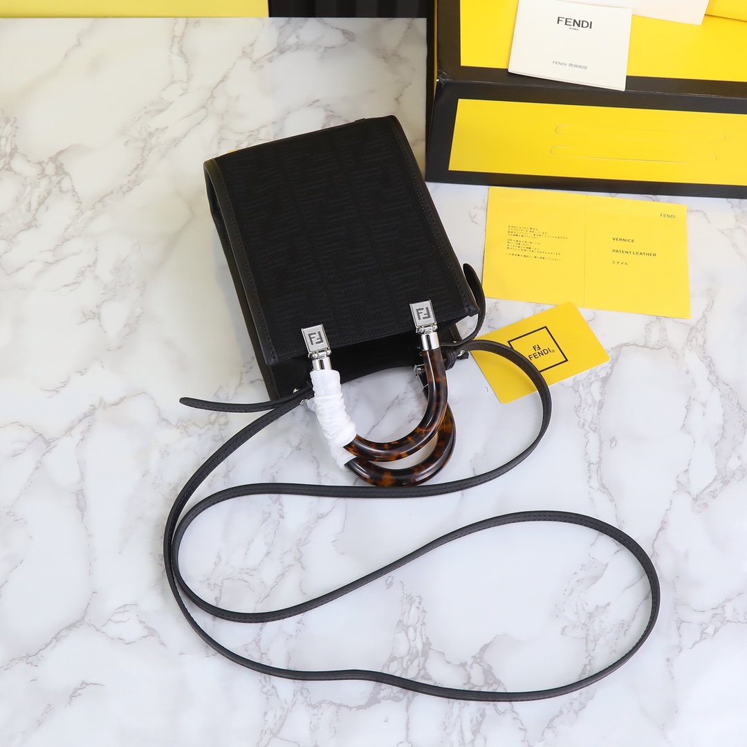 FENDI Sunshine Mini Tortoiseshell Handheld Crossbody Bag, an incredibly exquisite mini tote with tortoiseshell handles, is definitely the must-have “it bag” of the year! Don’t be fooled by its small size, it can accommodate all the essential items you need when going out. This little cutie is truly irresistible!