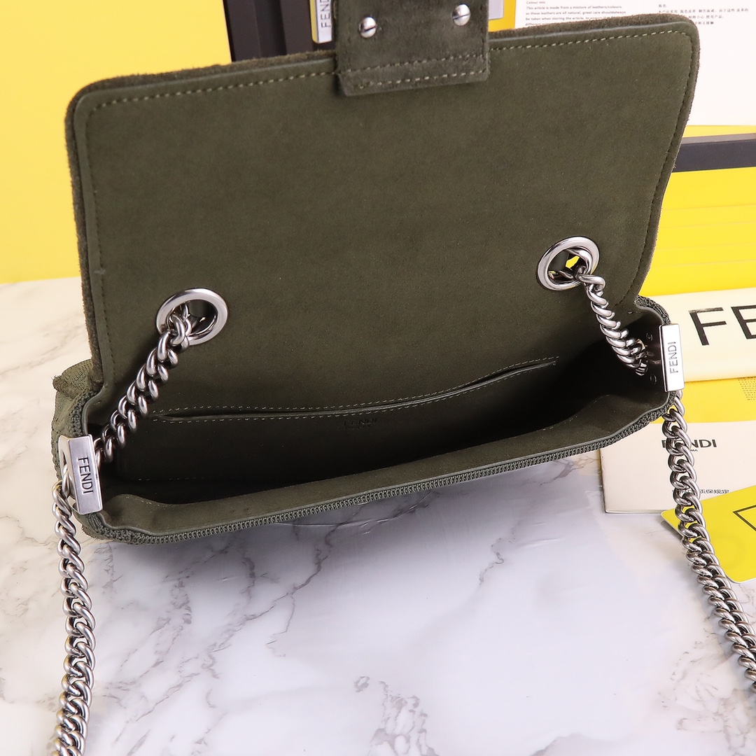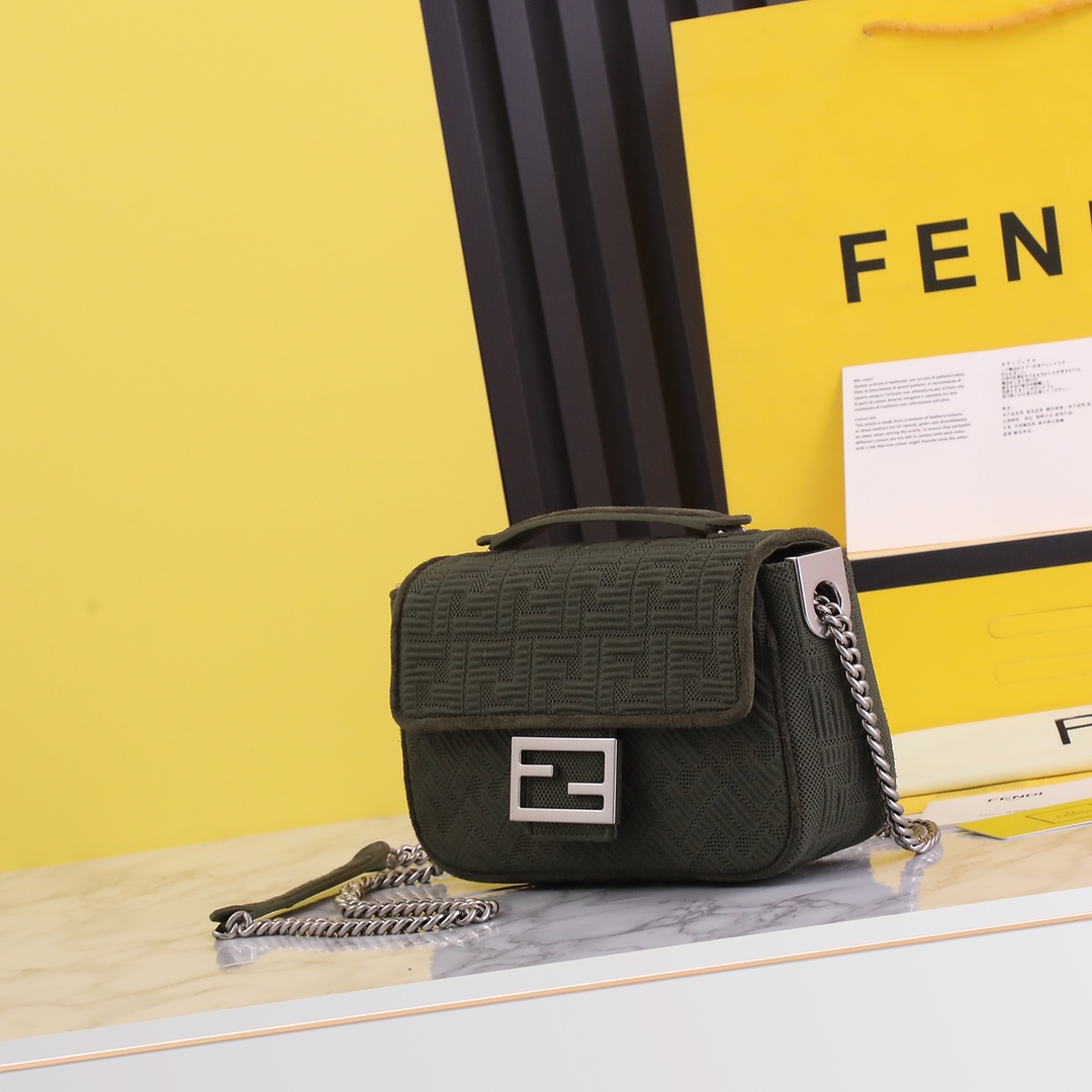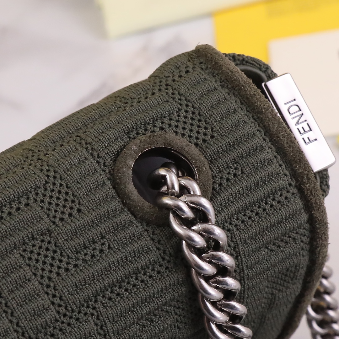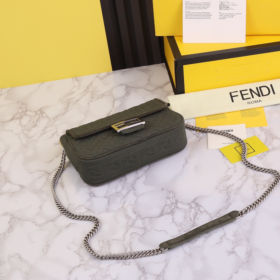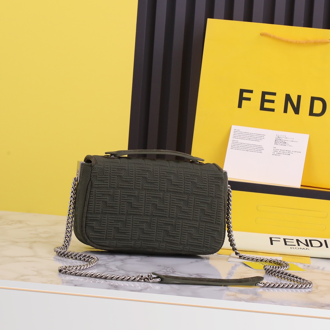 This FENDI handbag features a 3D textured FF chainette, designed with high-tech mesh fabric for a unique and distinctive look. The interior is made of premium leather material, providing an exceptional tactile and visual experience. The bag has a spacious capacity and is a must-have for urban fashionistas. It comes with a complete packaging.