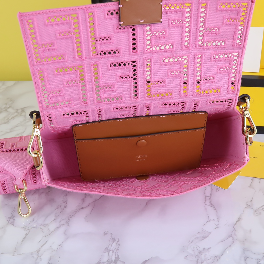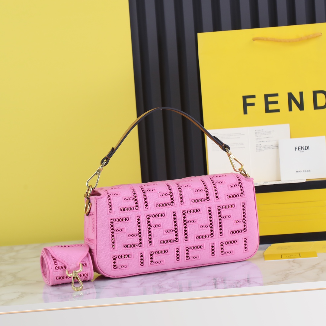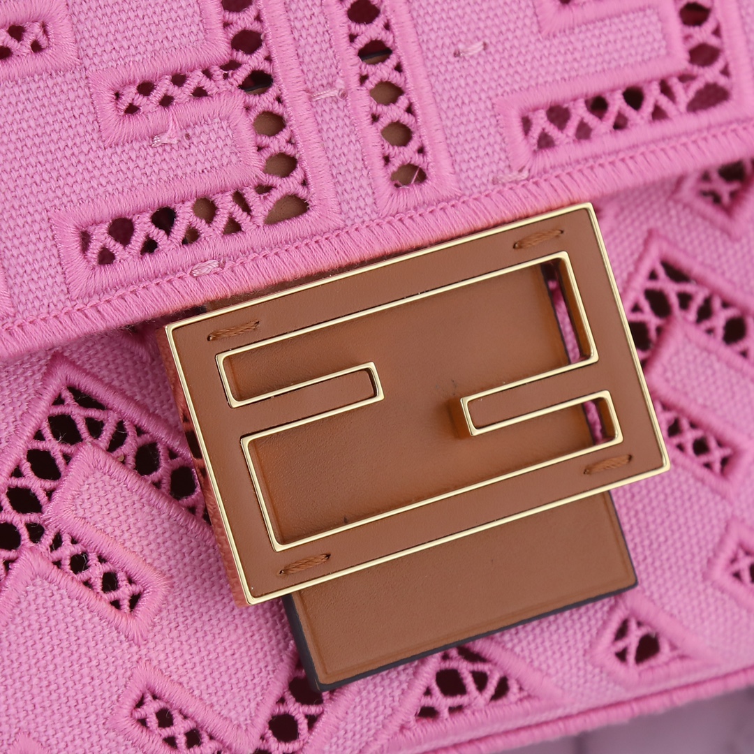 F E N D 1 latest Baguette F logo cutout embroidery series. The bag body is crafted with cutout embroidery, giving it a delicate and romantic beauty that is both elusive and captivating! #it’s not a bag, it’s Baguette