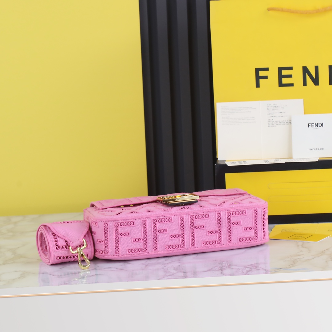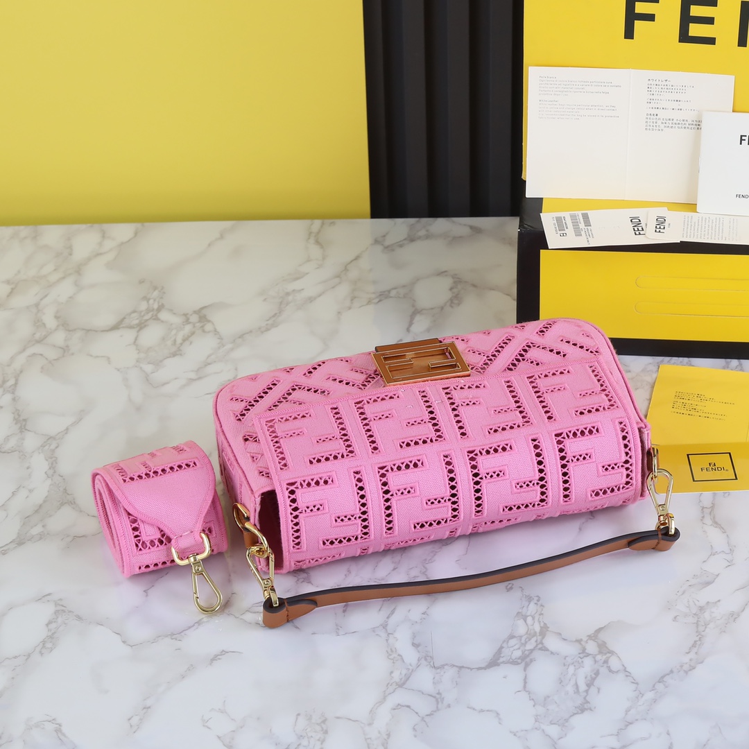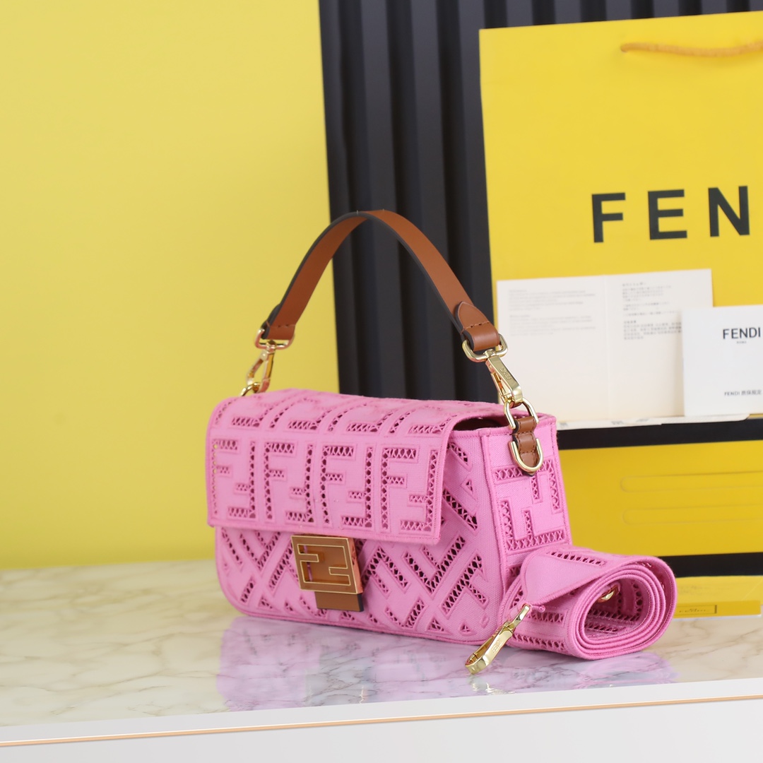 F E N D 1 latest Baguette F logo cutout embroidery series. The bag body is crafted with cutout embroidery, giving it a delicate and romantic beauty that is both elusive and captivating! #it’s not a bag, it’s Baguette