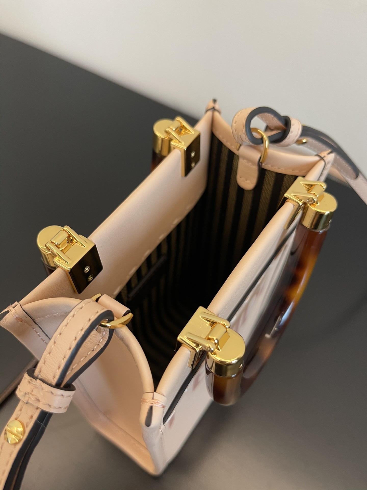 FENDI Sunshine Mini Tortoiseshell Handheld Crossbody Bag, an incredibly exquisite mini tote with tortoiseshell handles, is definitely the must-have “it bag” of the year! Don’t be fooled by its small size, it can accommodate all the essential items you need when going out. This little cutie is truly irresistible!