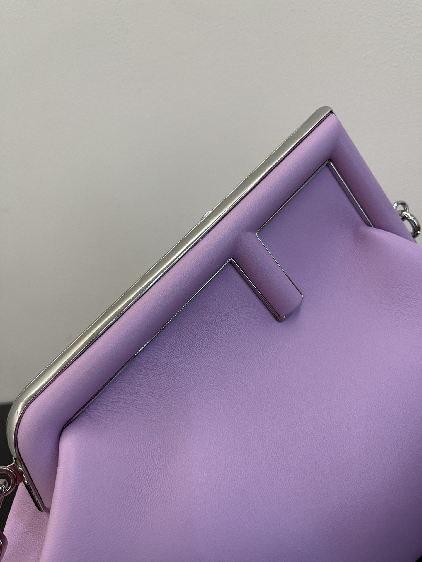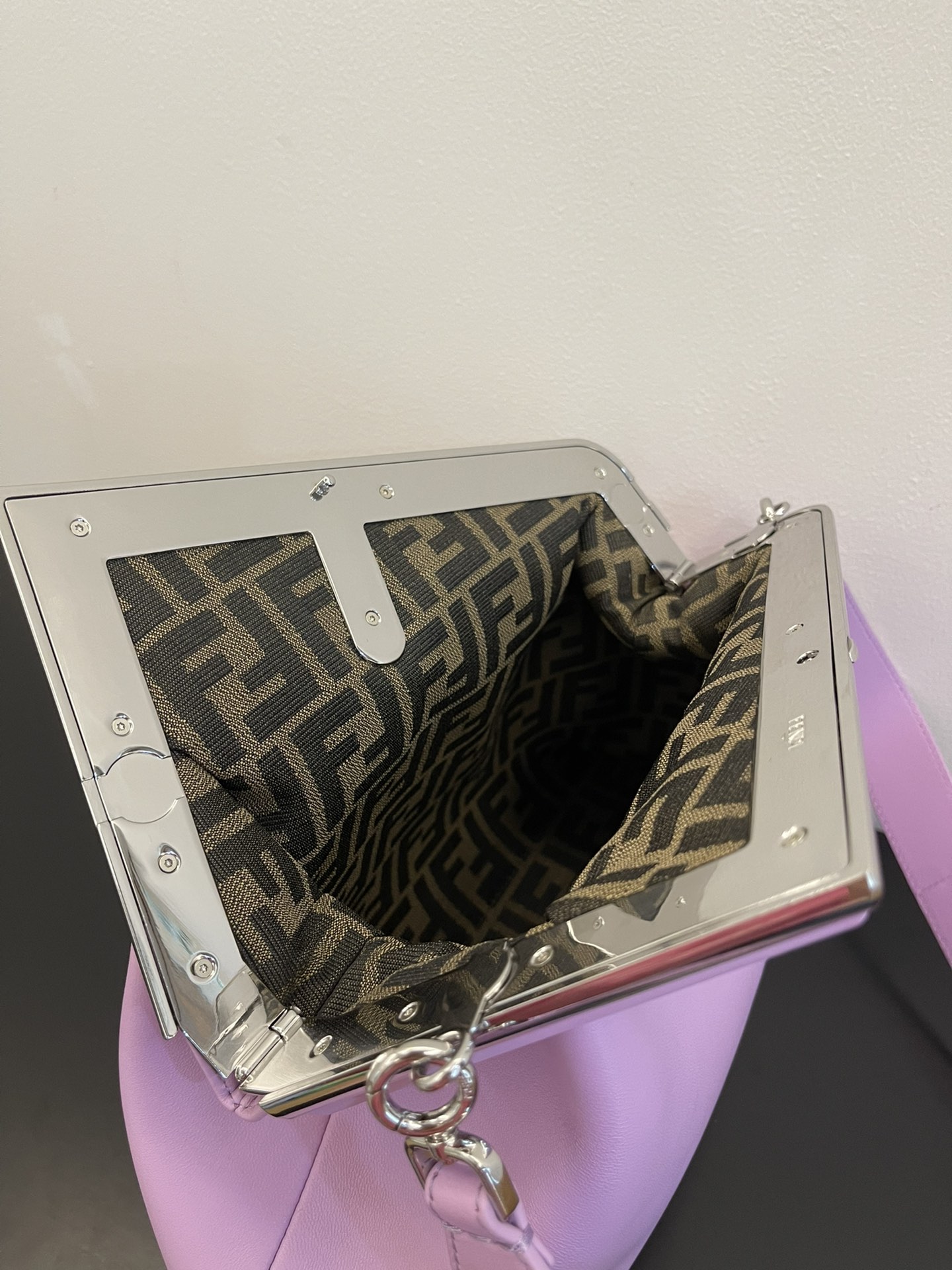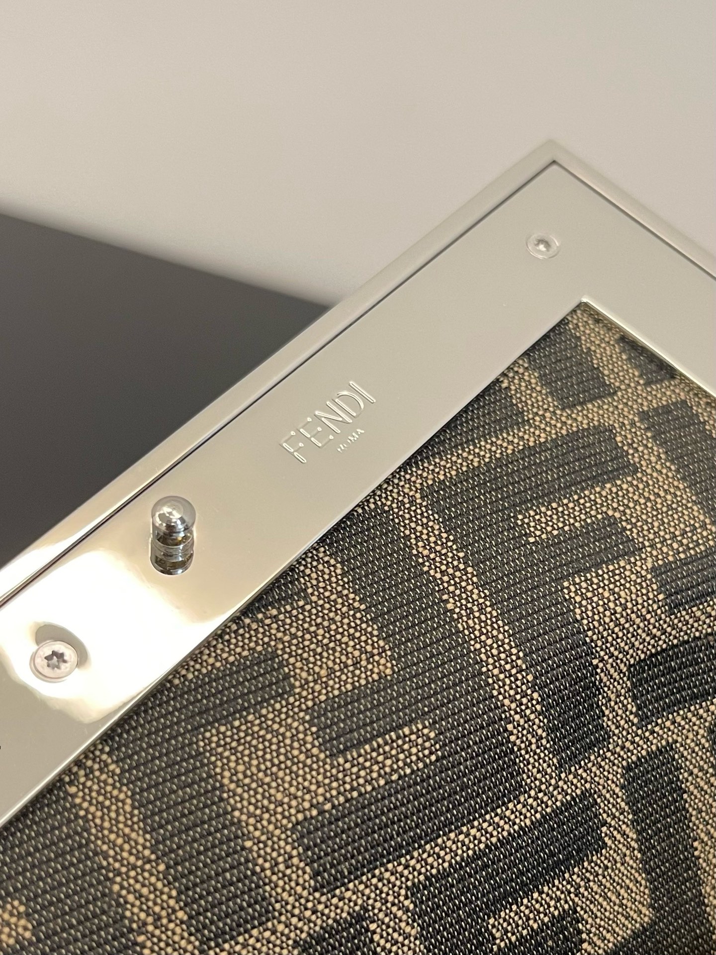 Introducing the brand new FENDI First! Designed under the direction of designer Kim Jones, the first-ever Fend1 bag revolutionizes traditional bag silhouettes. The combination of metal-trimmed large logo lock closure and architectural deconstructed design brings together artistry and fashion, exuding elegance with a touch of edginess that instantly catches the eye! Whether carried by hand for a formal evening event or worn crossbody for a high-end street chic vibe, it’s a showstopper.