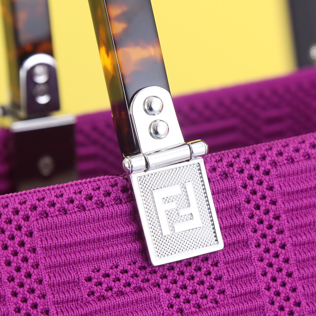 Fendi x Skims joint capsule collection limited edition Fend1 Tote features a high-tech mesh fabric with a 3D texture FF pattern. The standout feature of the entire bag is the amber-colored double handles, which can be twisted for a stylish and comfortable grip. It also comes with a wide shoulder strap. The overall vintage feel makes it perfect for fashion enthusiasts who love retro styles. Highly recommended!