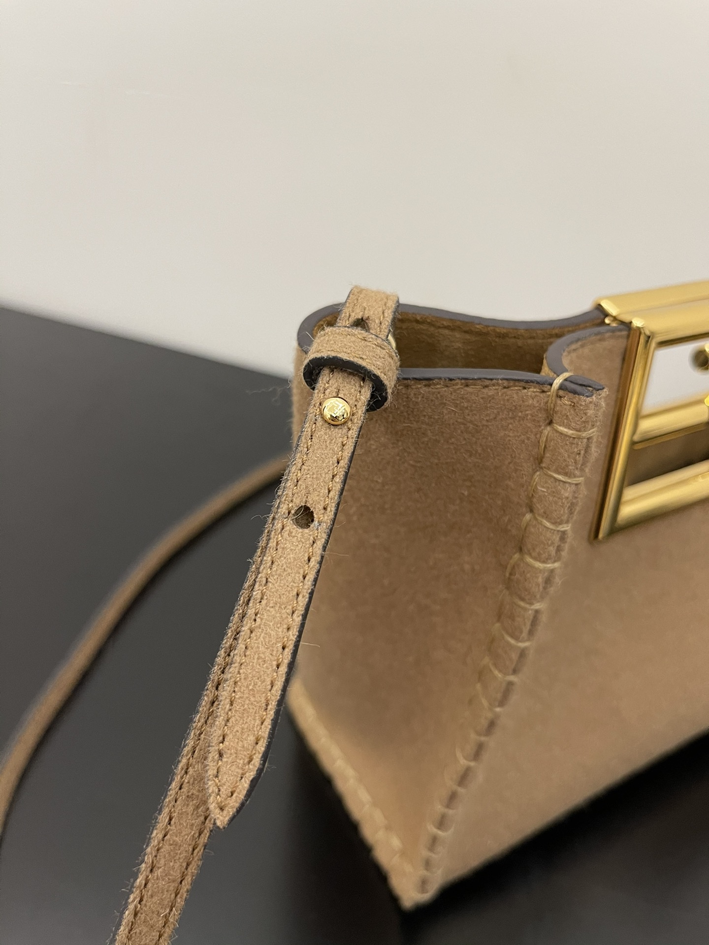 Introducing the FENDI Way New Double F Clasp Handbag, featuring the classic double F clasp and made from plush velvet material. Its simple yet elegant design creates a versatile accessory that can be styled in different ways depending on the size. The larger size exudes a strong presence, while the smaller size is charming and cute. Both sizes are incredibly versatile, combining minimalism and fashion.