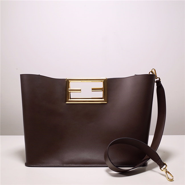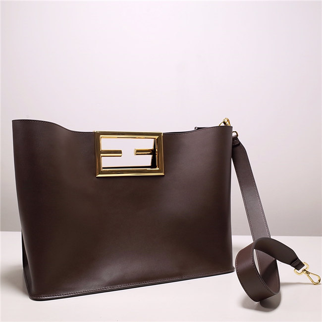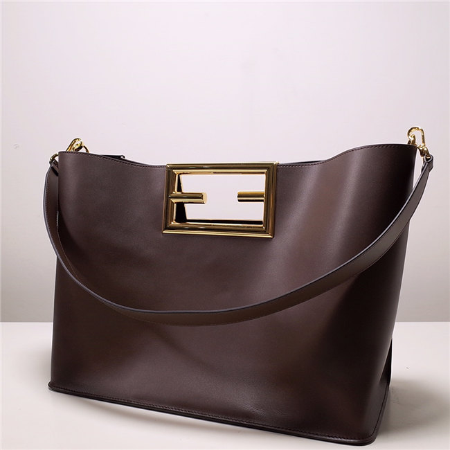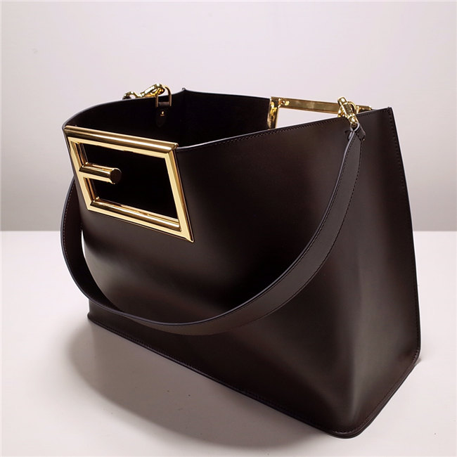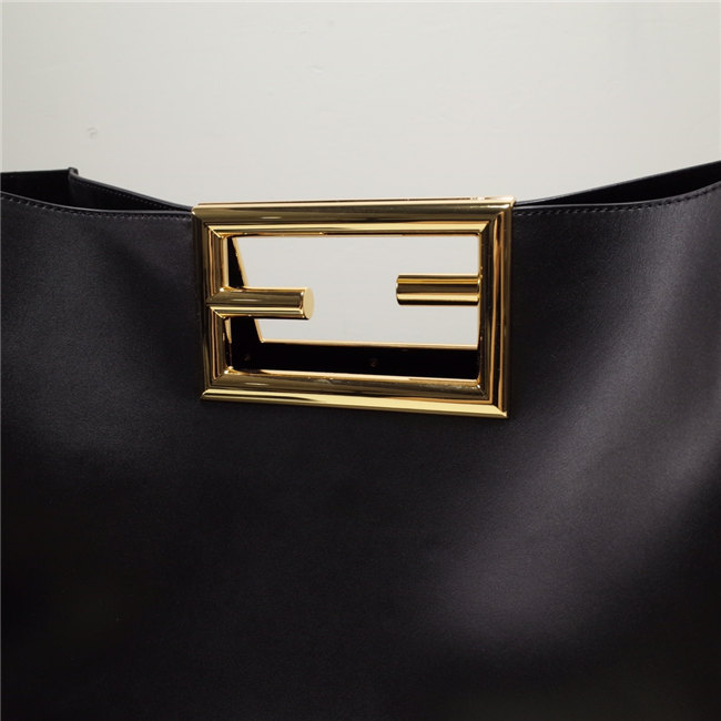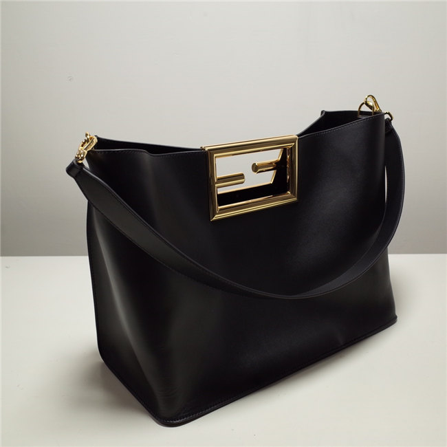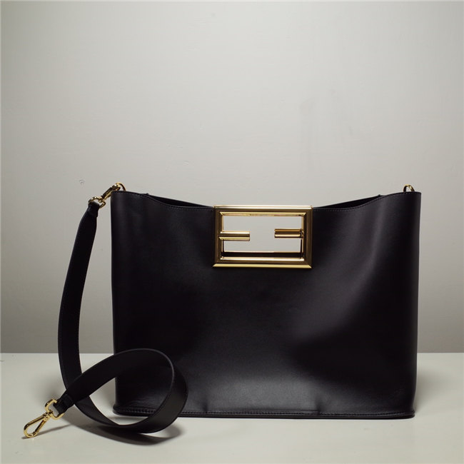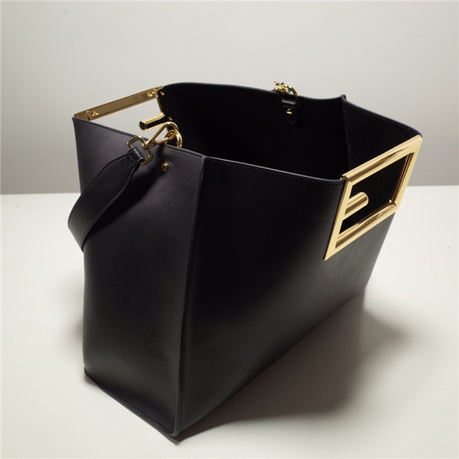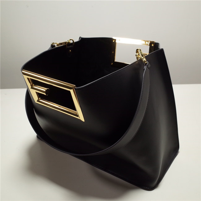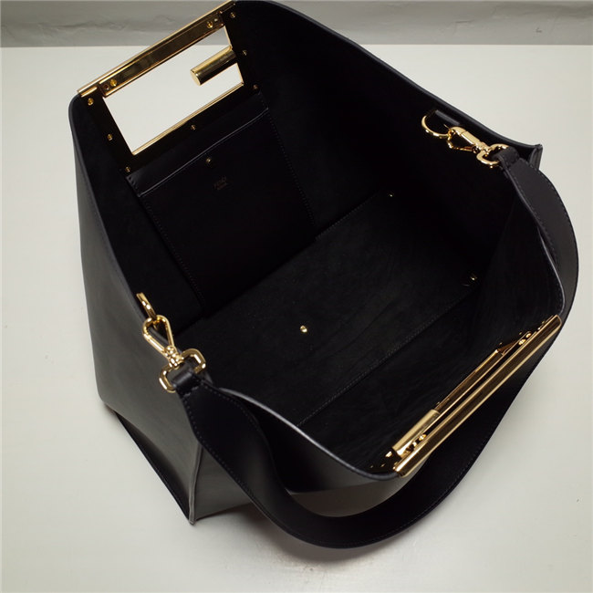Medium Fendi Way bag made of Black-colored leather, with oversize FF logo metal handles.